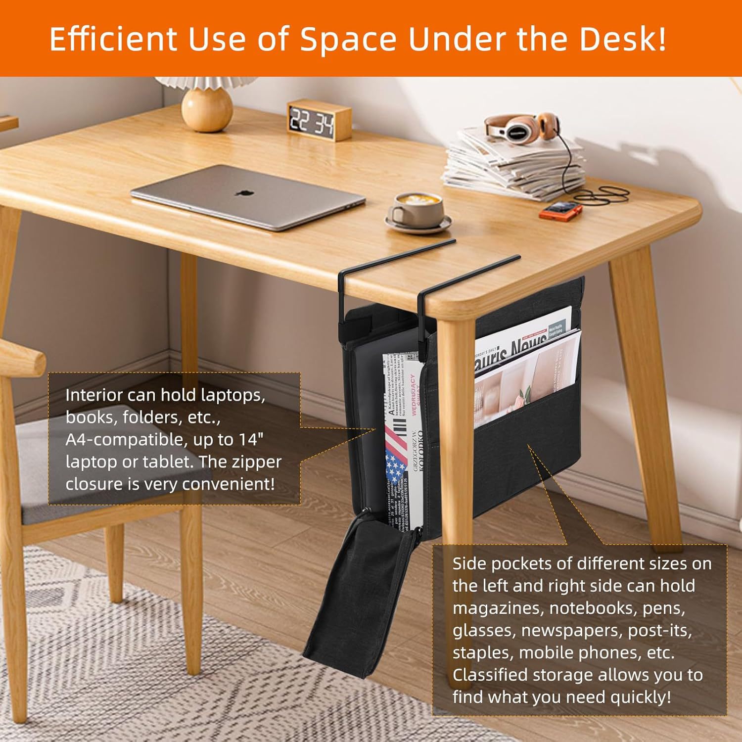 【兼容 A4 和平板电脑】挂在书桌下方,可存储 A4 大小的文档和文件,可容纳最大 14 英寸的笔记本电脑和平板电脑。 这款悬挂式办公桌收纳袋是家庭办公室、出差和户外探险的绝佳伴侣。