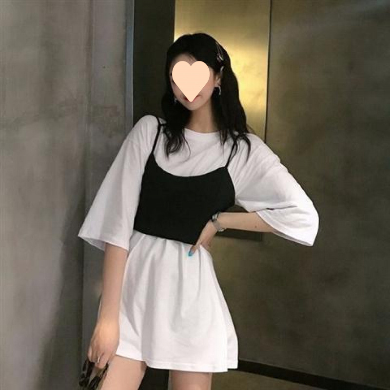 흰색 반팔 셔츠 여성 느슨한 유행 최고 유행 활 슬링 여름 한국 스타일 학생 세트 여성스토어 가기