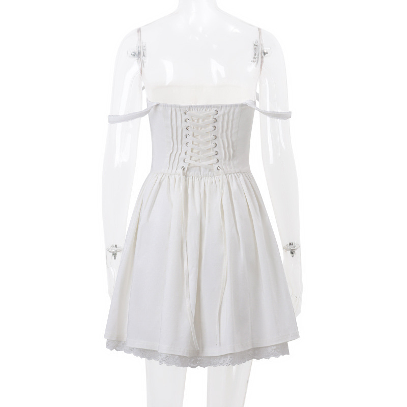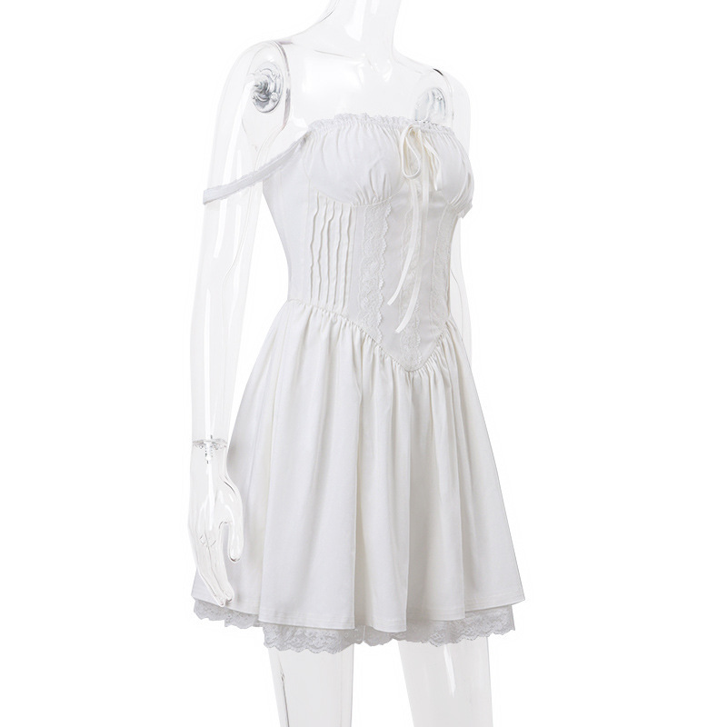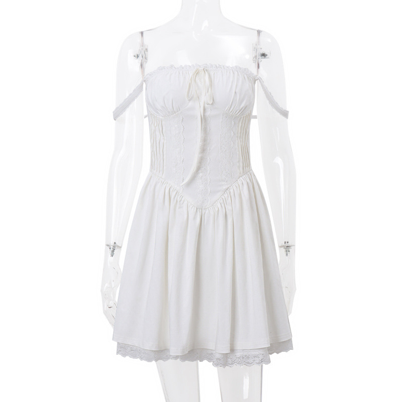 대외 무역 AliExpress 2024 가을 새로운 여성 프랑스 기질 우아한 섹시한 로우 컷 허리 슬링 원피스