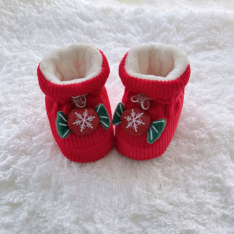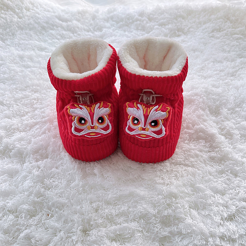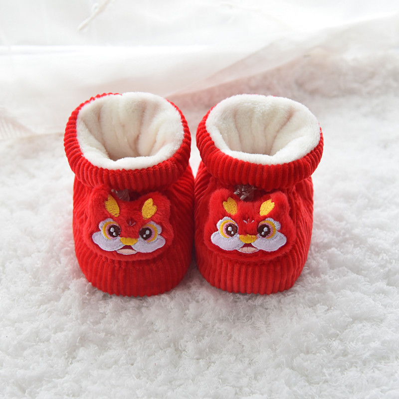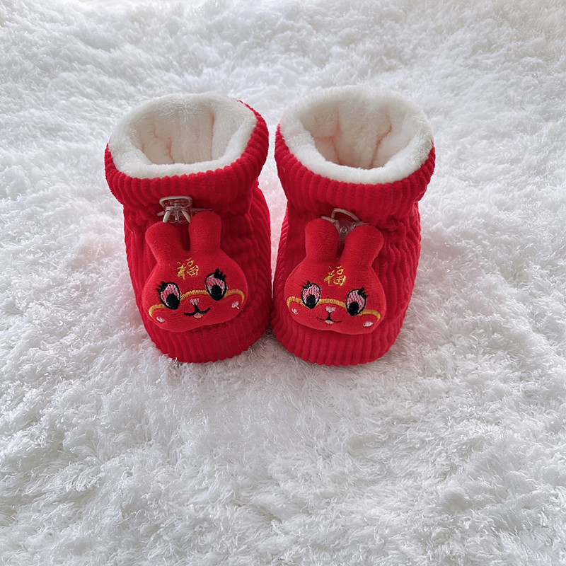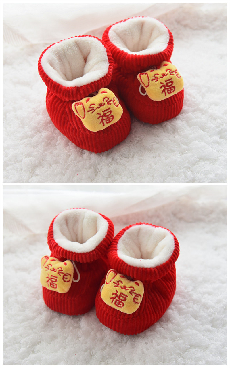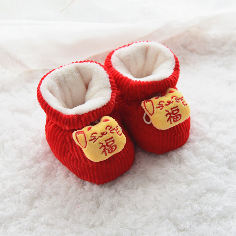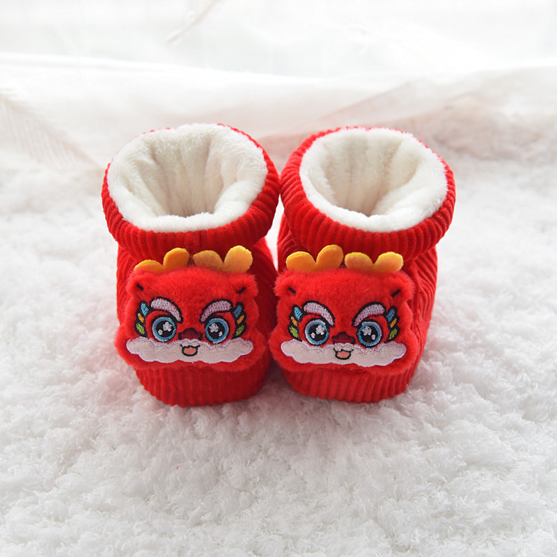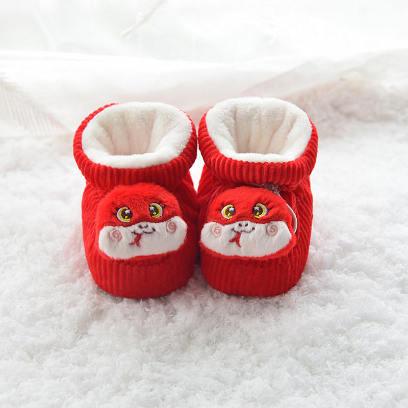 겨울 아기 신발 0-1 세 아기 유아 신발 지롱 뱀 기모 남녀 6 신생아 발 보호기 빨간 코튼 신발