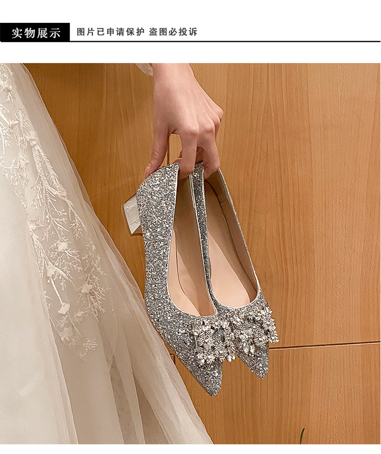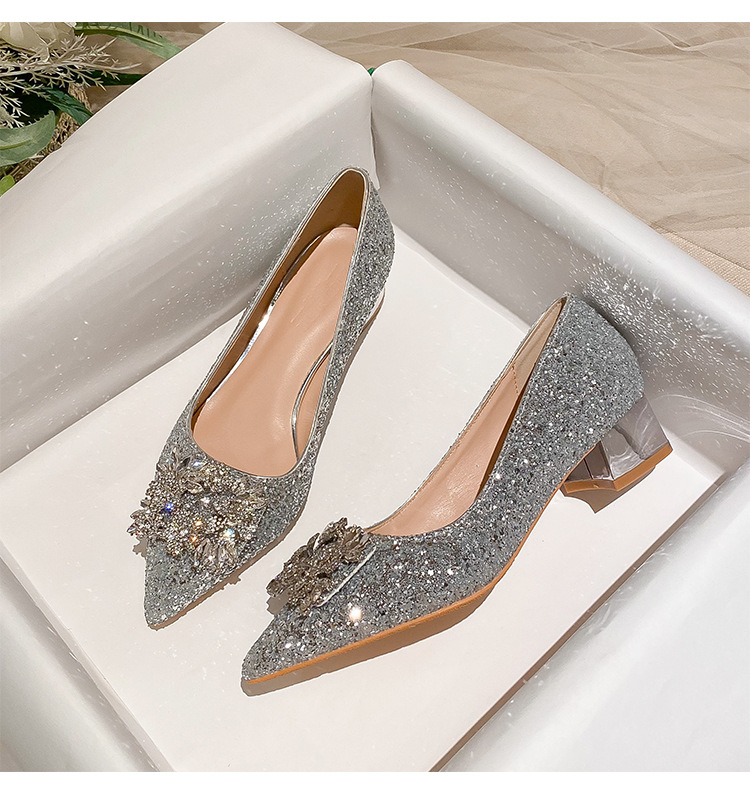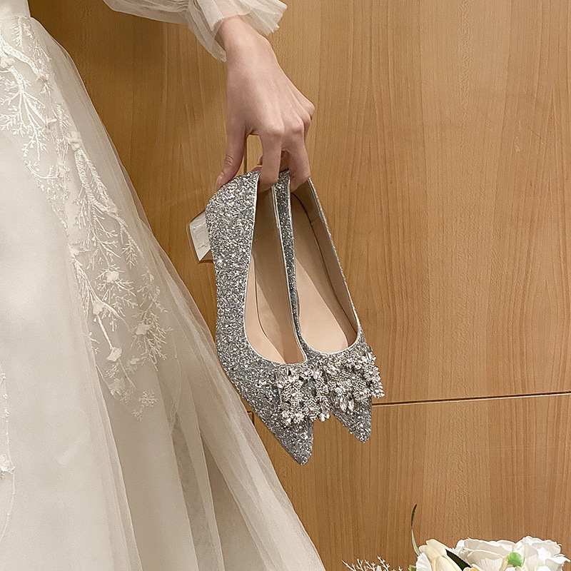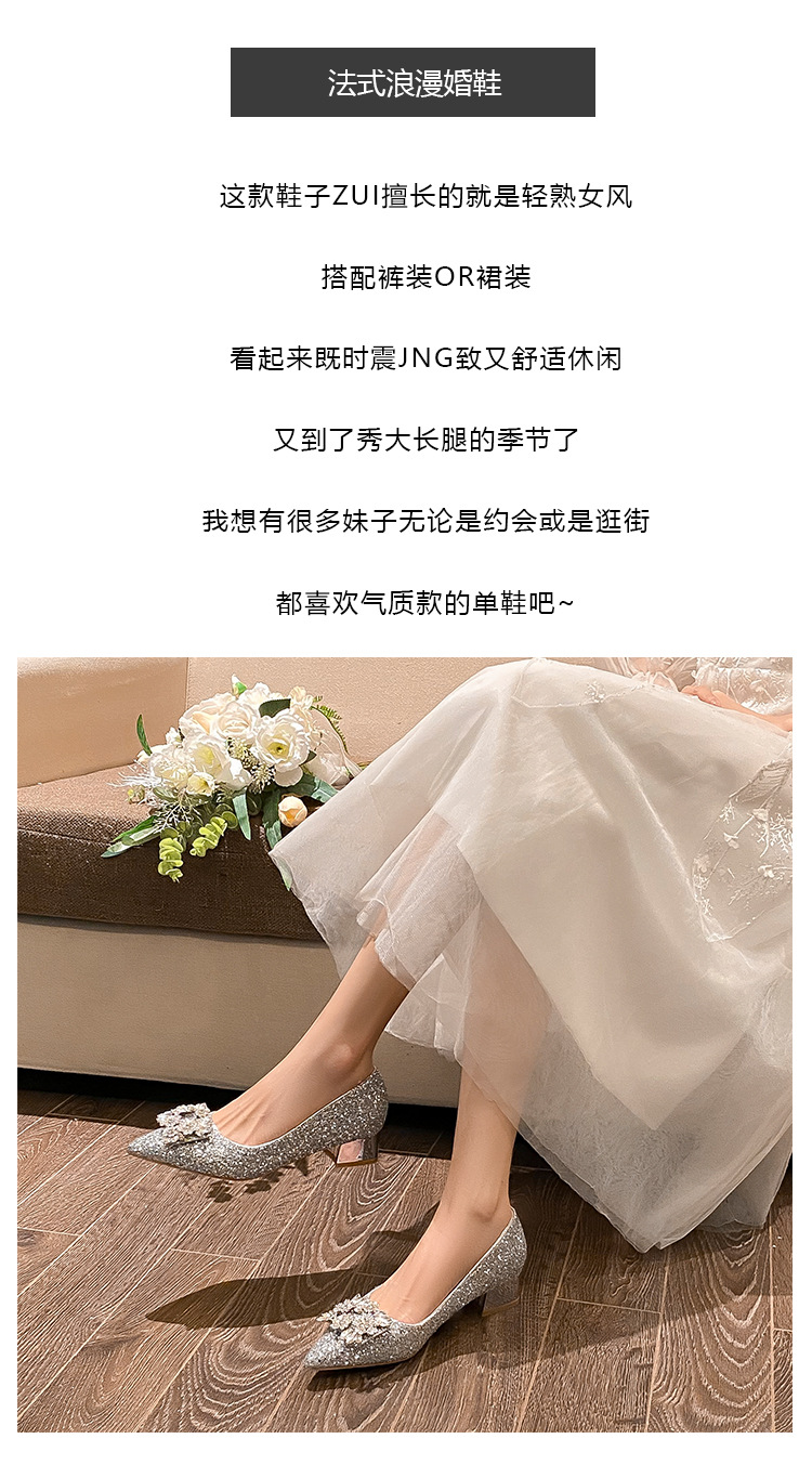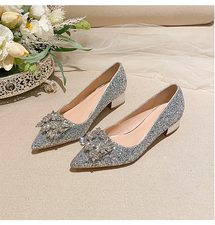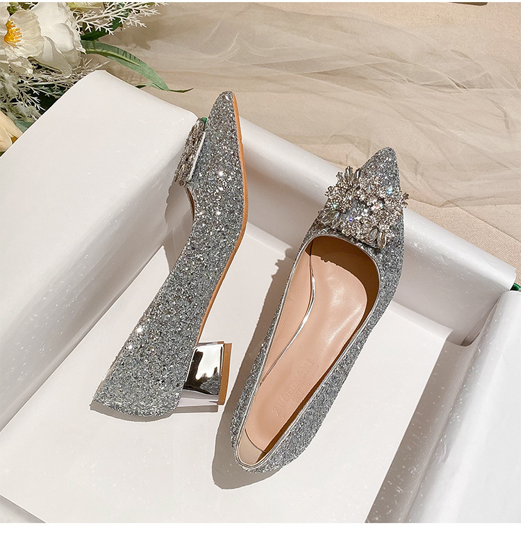 YB-A3 실버 프랑스 미디엄 힐 신발 여성의 새로운 스퀘어 버클 웨딩 슈즈 신부 들러리 슈즈 플러스 사이즈 지방 넓어진 신발 41 43스토어 가기