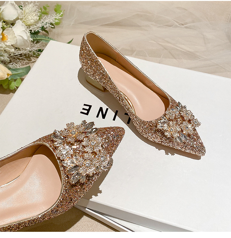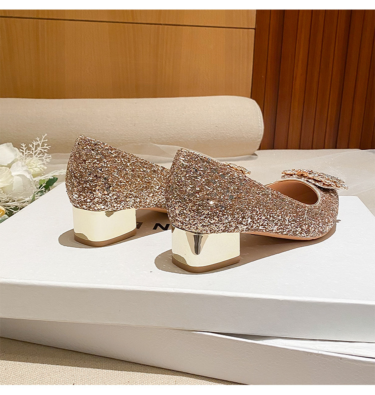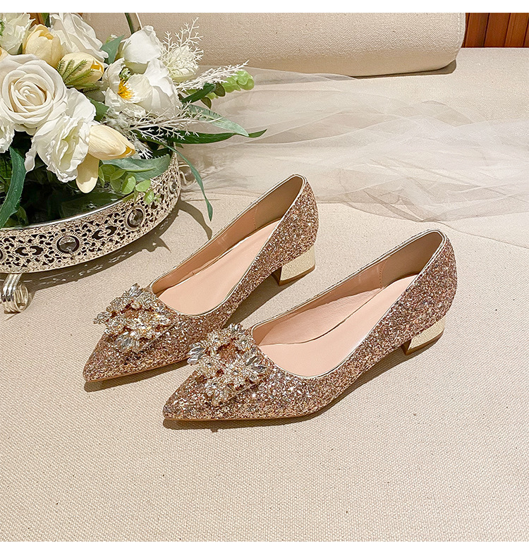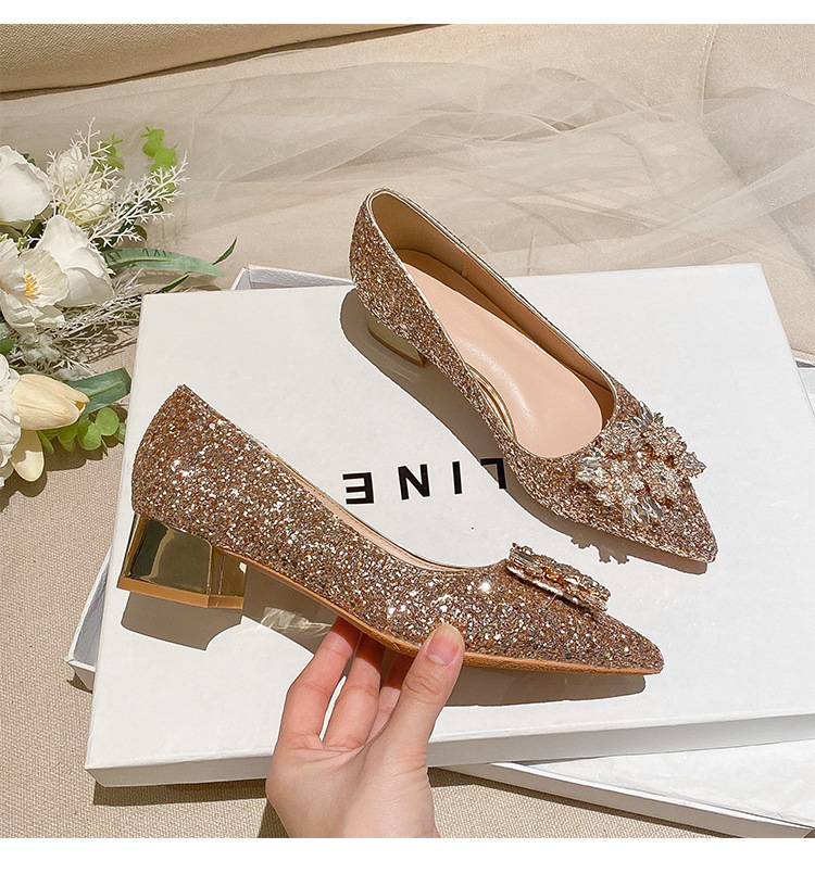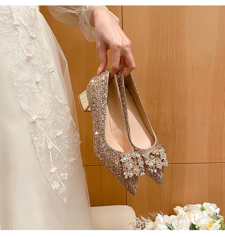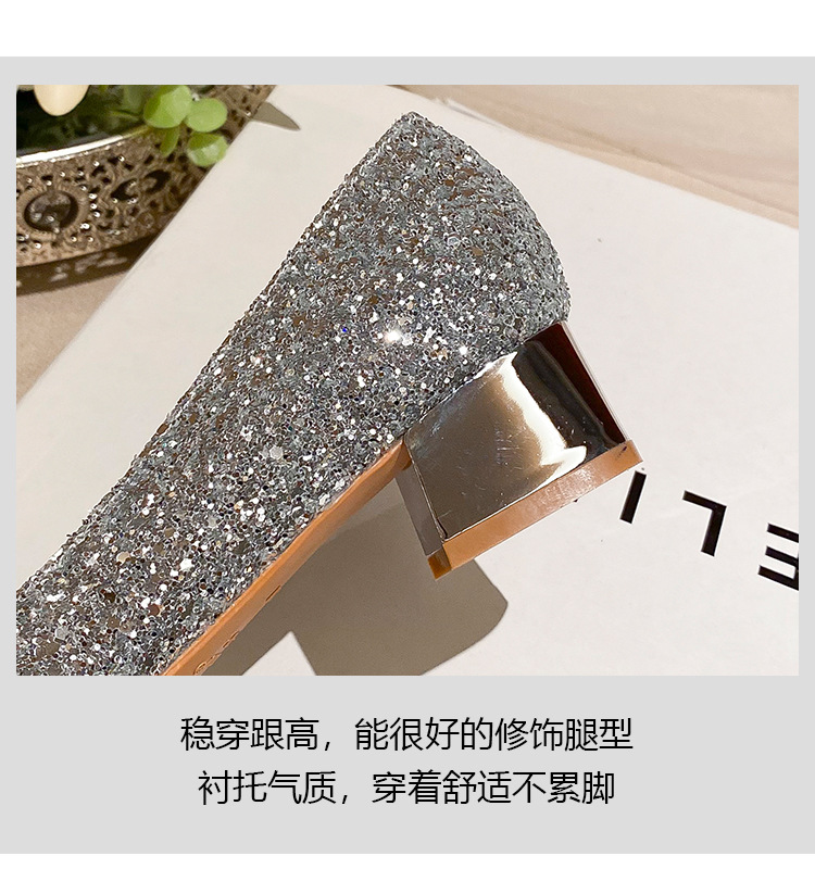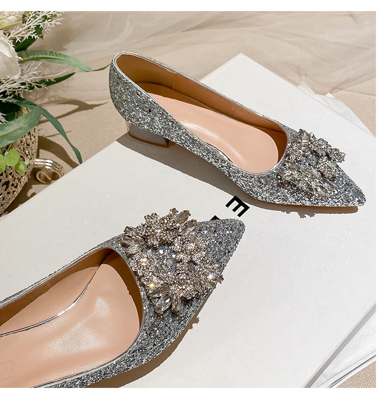 YB-A3 실버 프랑스 미디엄 힐 신발 여성의 새로운 스퀘어 버클 웨딩 슈즈 신부 들러리 슈즈 플러스 사이즈 지방 넓어진 신발 41 43스토어 가기