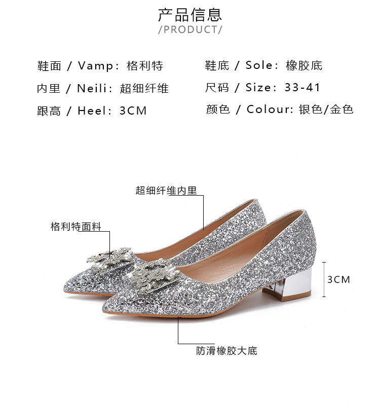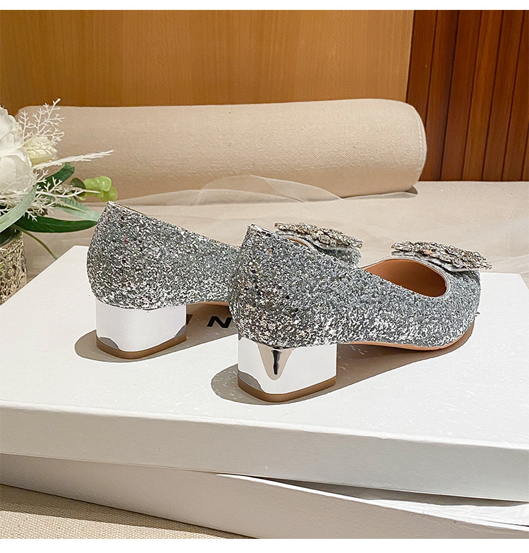 YB-A3 실버 프랑스 미디엄 힐 신발 여성의 새로운 스퀘어 버클 웨딩 슈즈 신부 들러리 슈즈 플러스 사이즈 지방 넓어진 신발 41 43