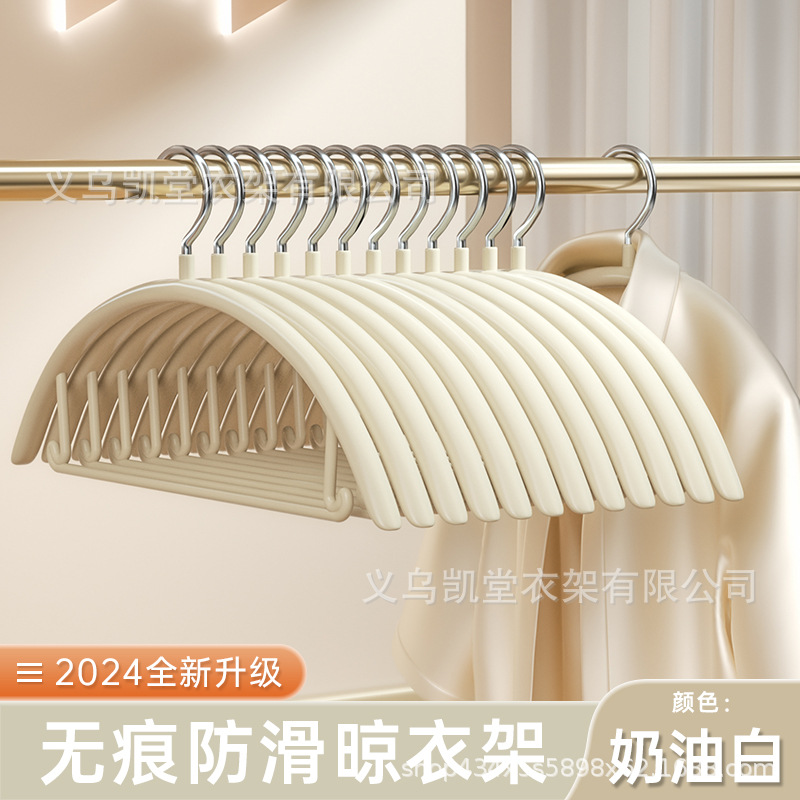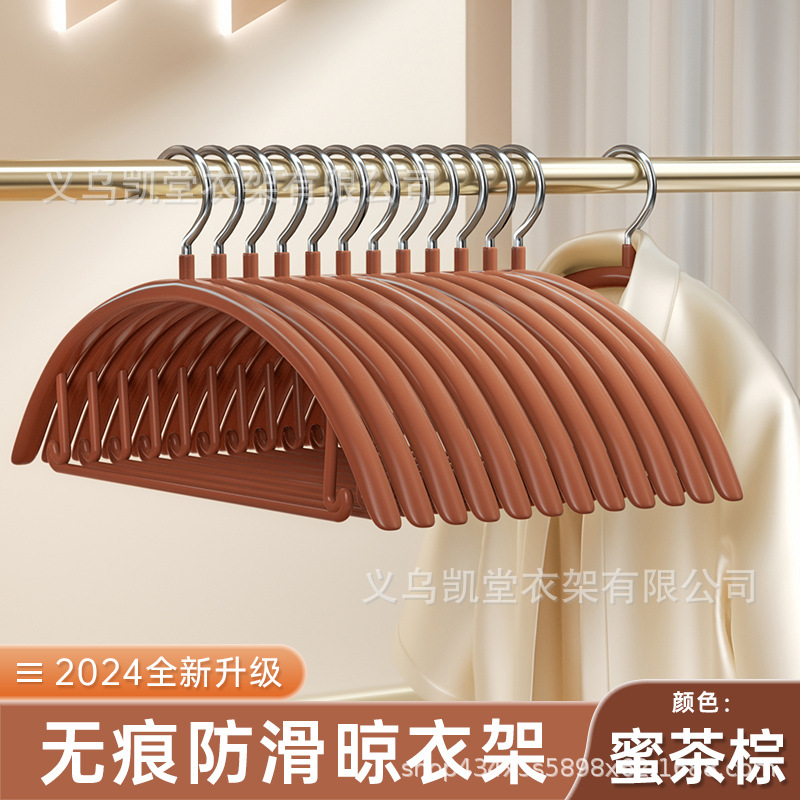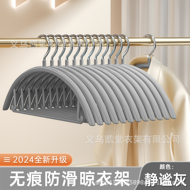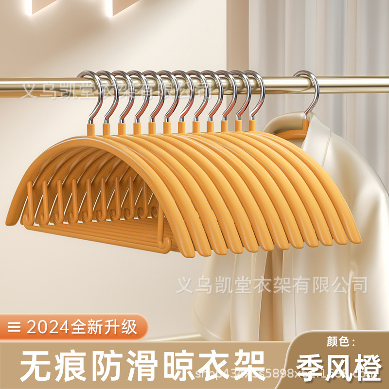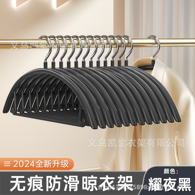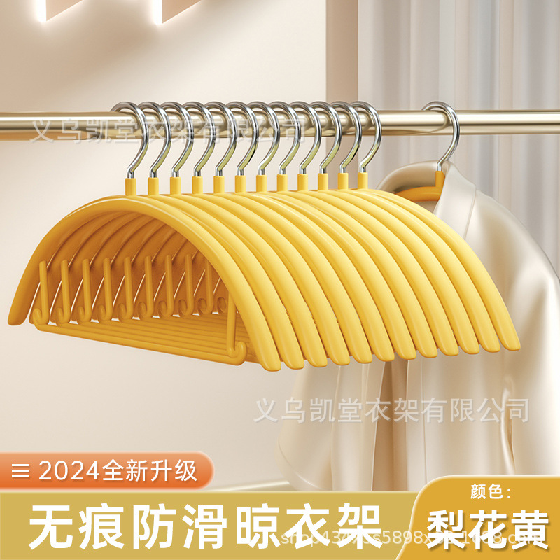 Yiwu Kaitang 반원형 침식 플라스틱 옷걸이 원활한 어깨없는 미끄럼 방지 성인 건조 옷걸이 홈 굵은 옷 지원스토어 가기