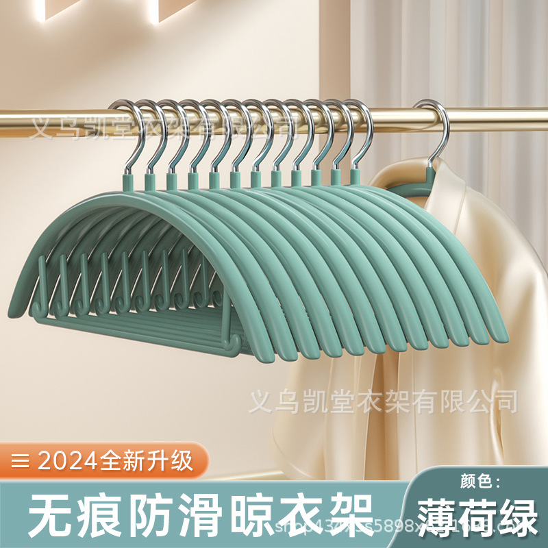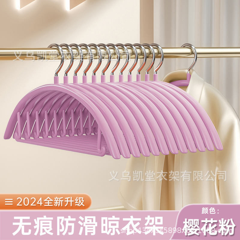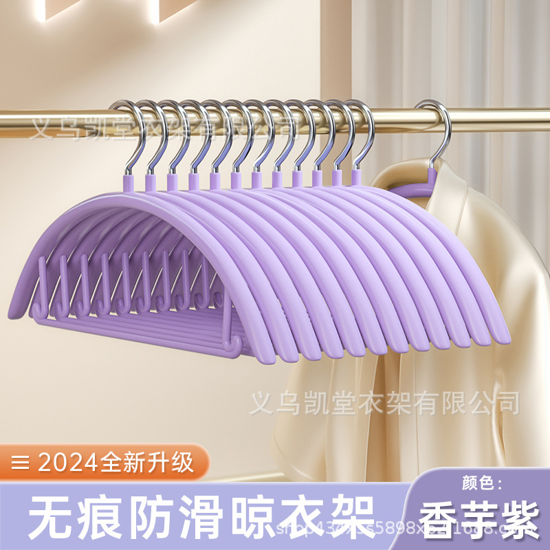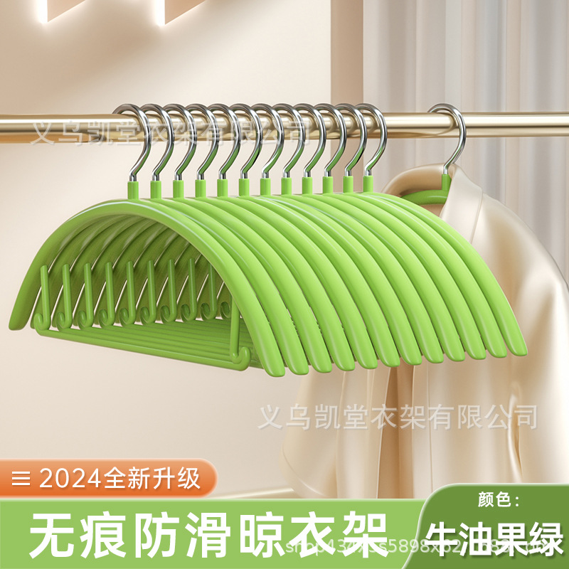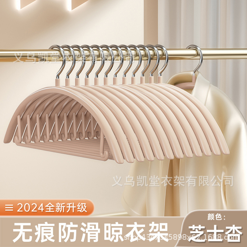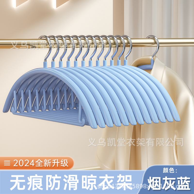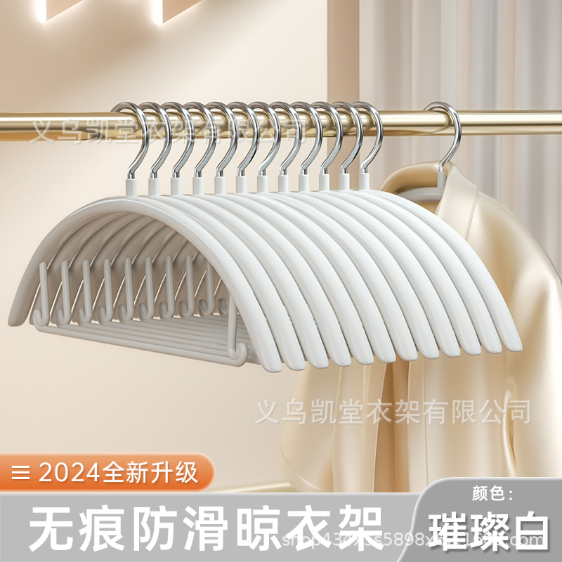 Yiwu Kaitang 반원형 침식 플라스틱 옷걸이 원활한 어깨없는 미끄럼 방지 성인 건조 옷걸이 홈 굵은 옷 지원스토어 가기