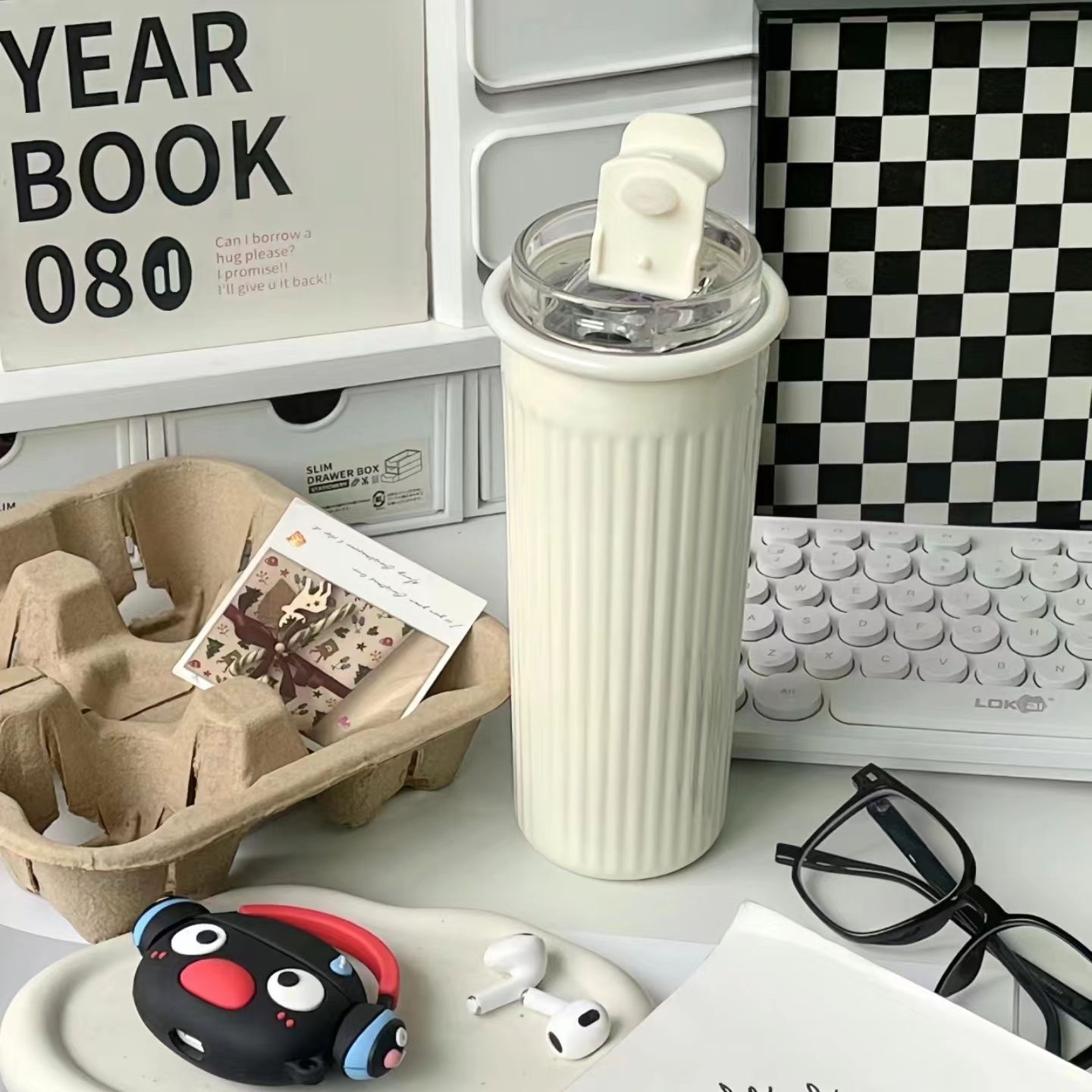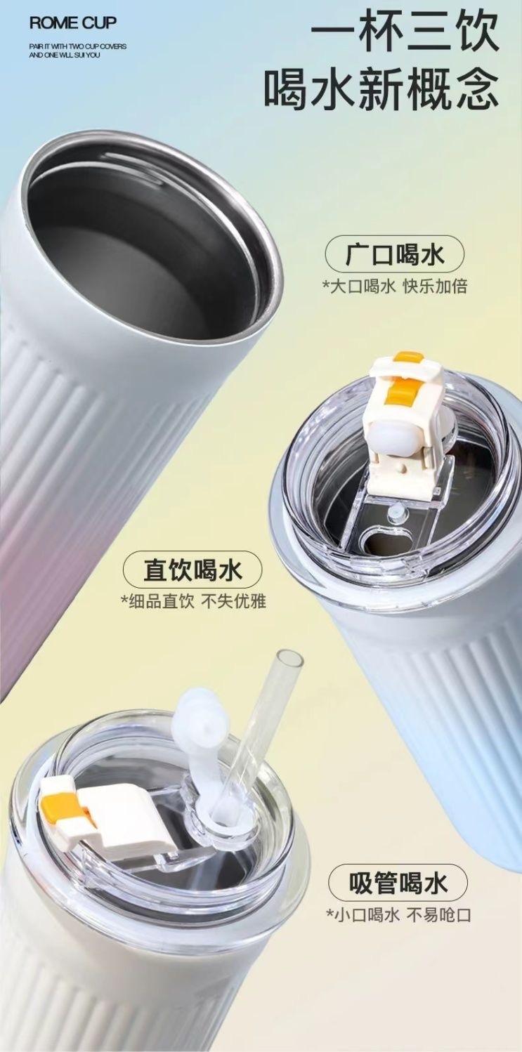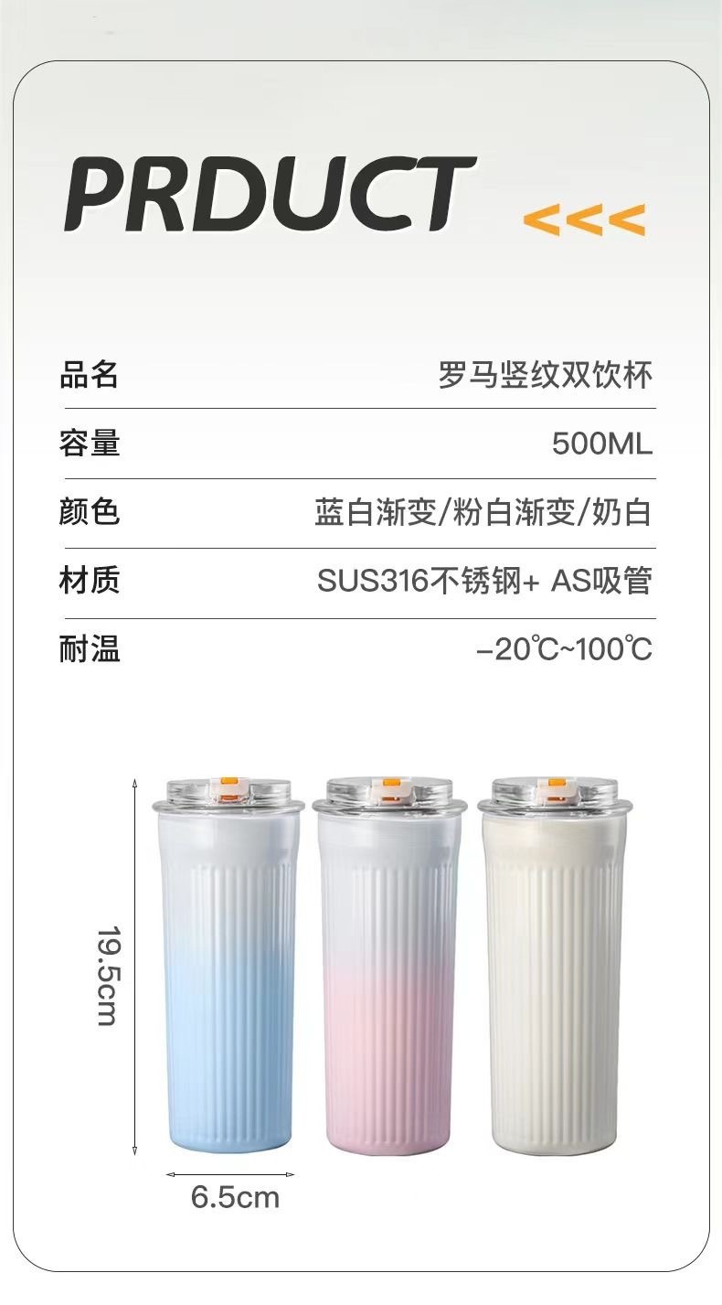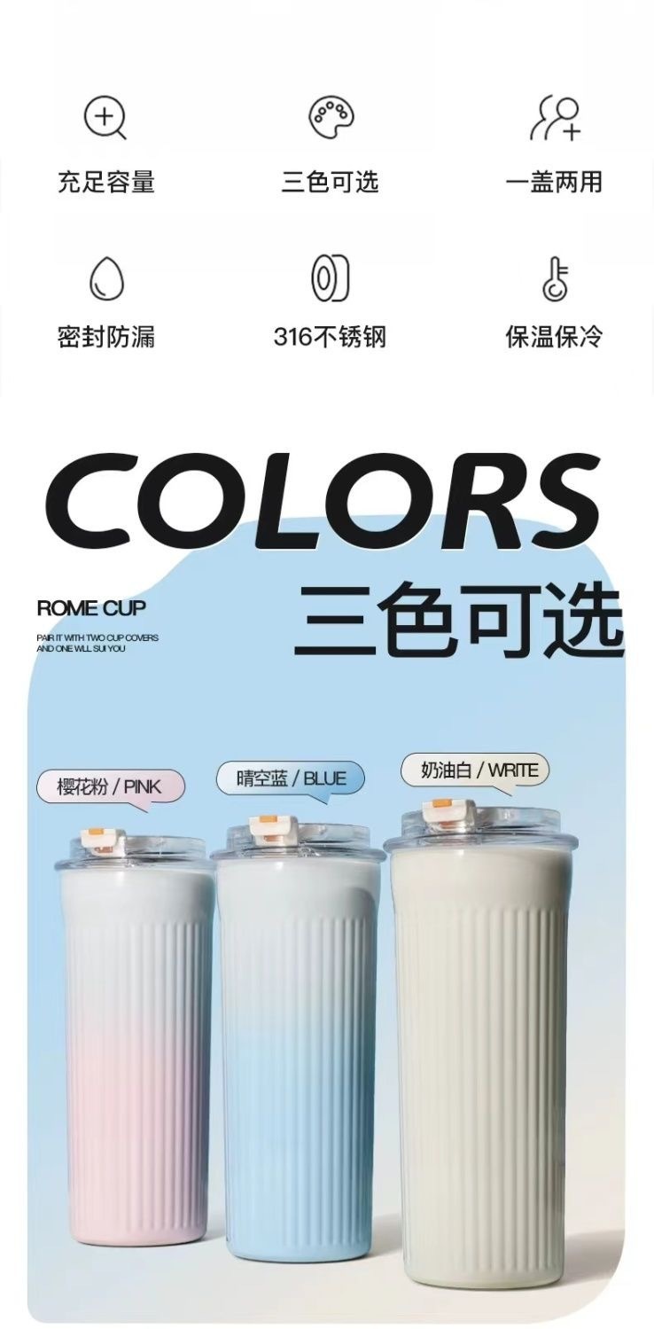 Ins 높은 색상 가치 316 스테인레스 스틸 보온병 컵 학생 소녀 더블 음료 흡입 튜브 컵 휴대용 자동차 사무실 물 컵