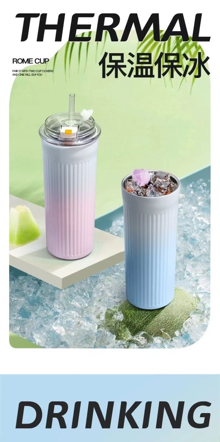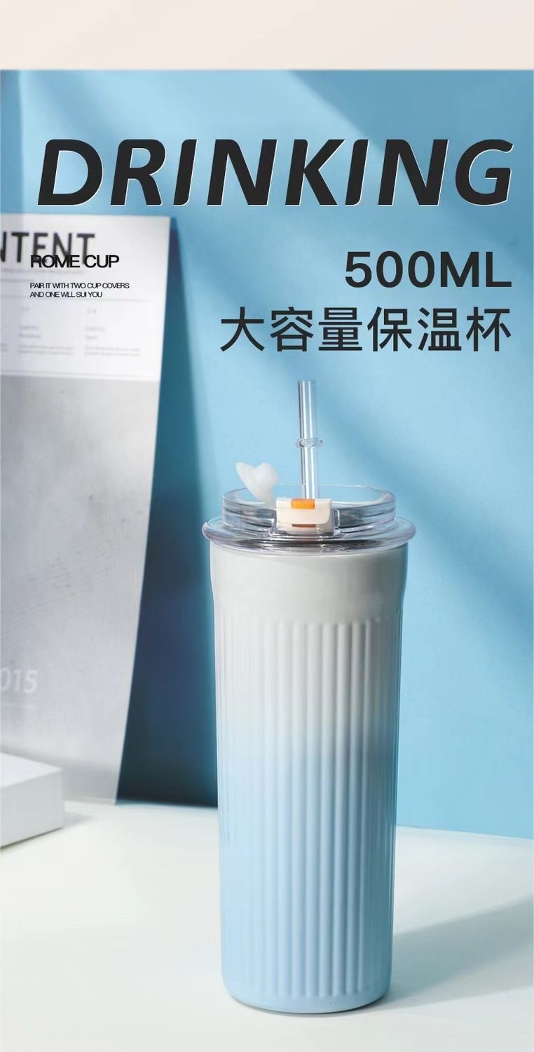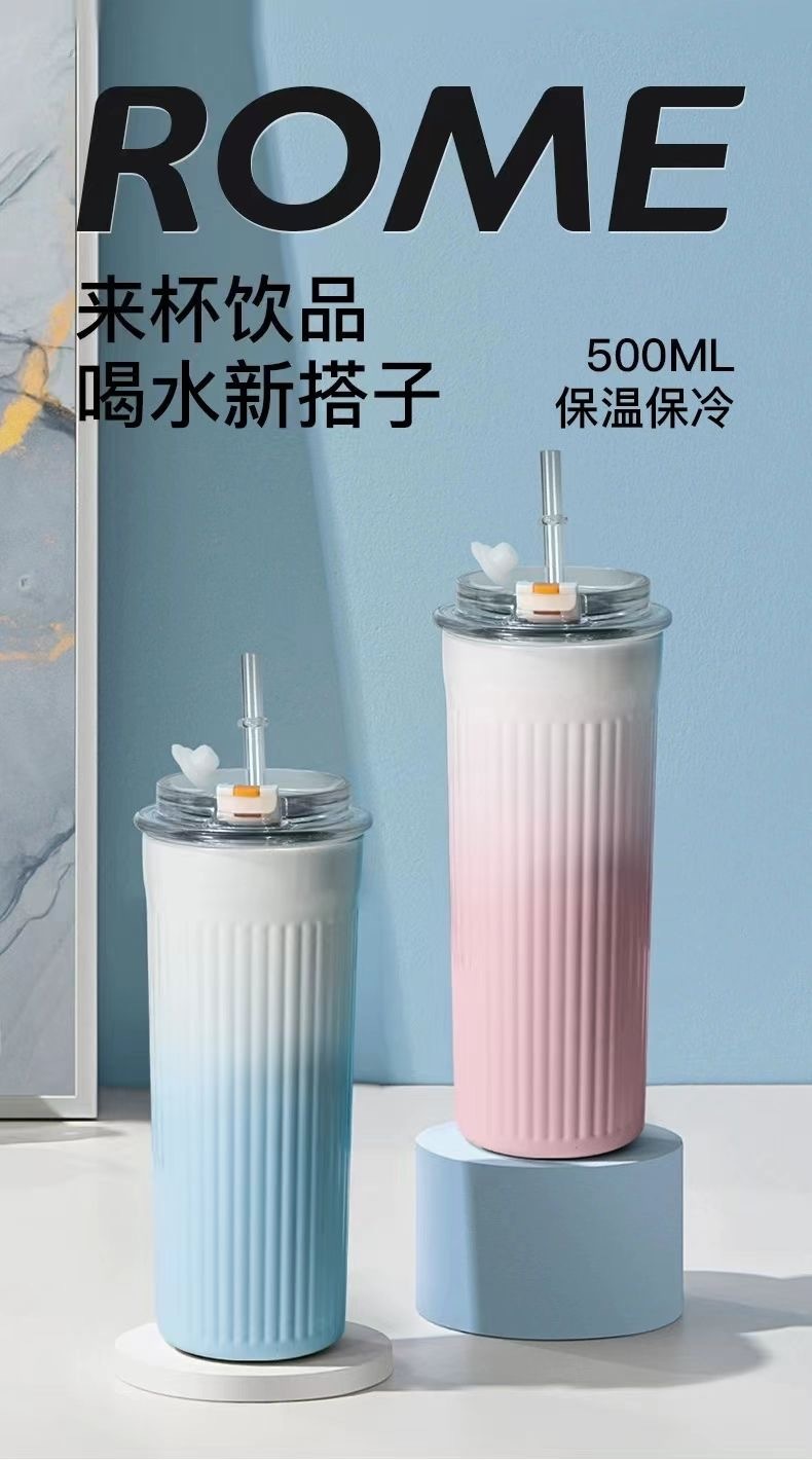 Ins 높은 색상 가치 316 스테인레스 스틸 보온병 컵 학생 소녀 더블 음료 흡입 튜브 컵 휴대용 자동차 사무실 물 컵스토어 가기