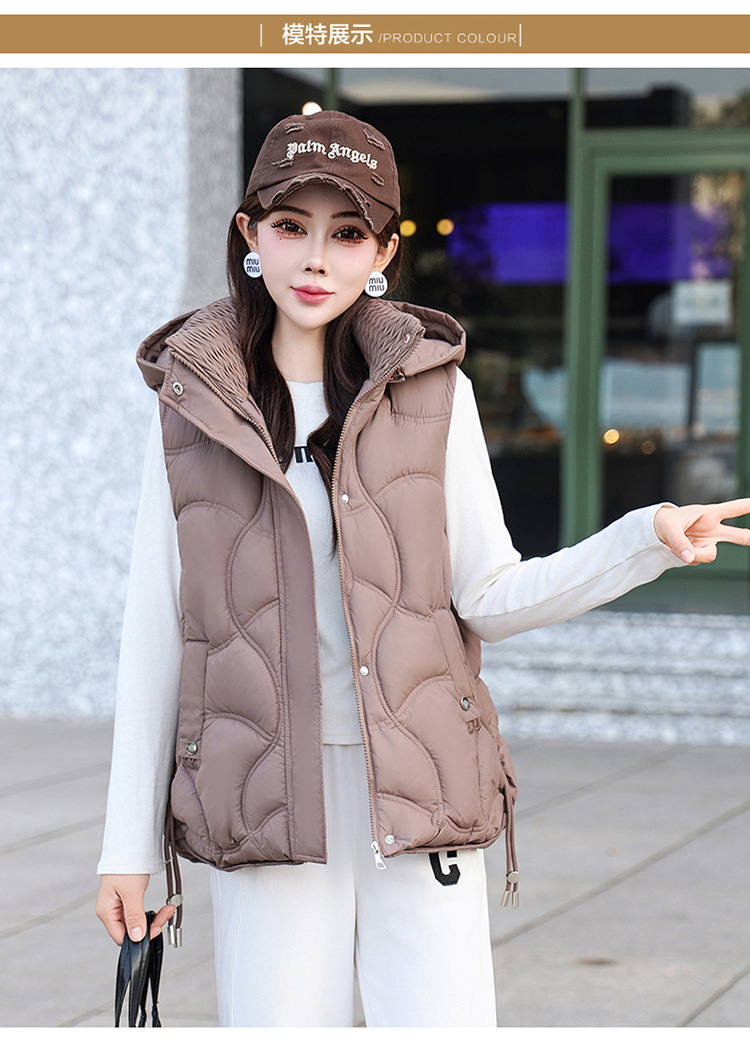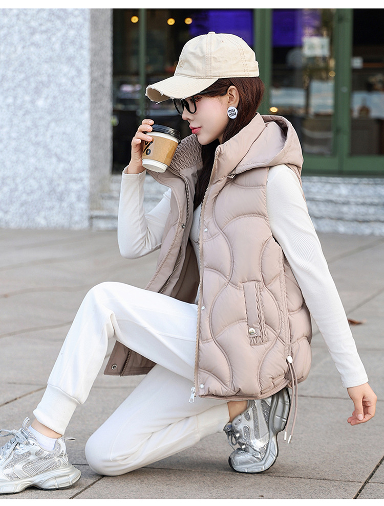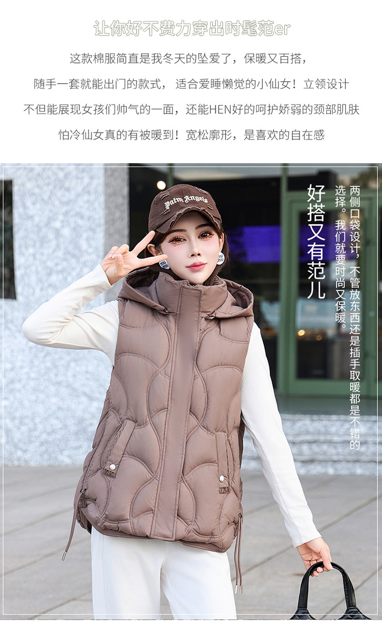 대형 포켓 스탠드 칼라 후드 조끼 여성의 새로운 가을과 겨울 따뜻한 외국 스타일 양복 조끼 느슨한 올 매치 중간 길이 면화 조끼스토어 가기