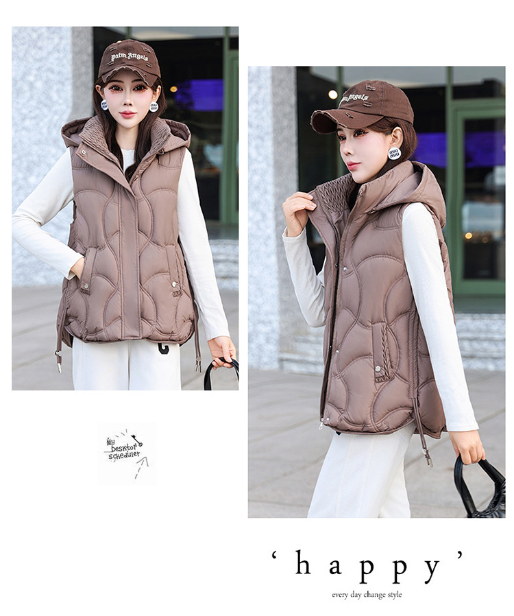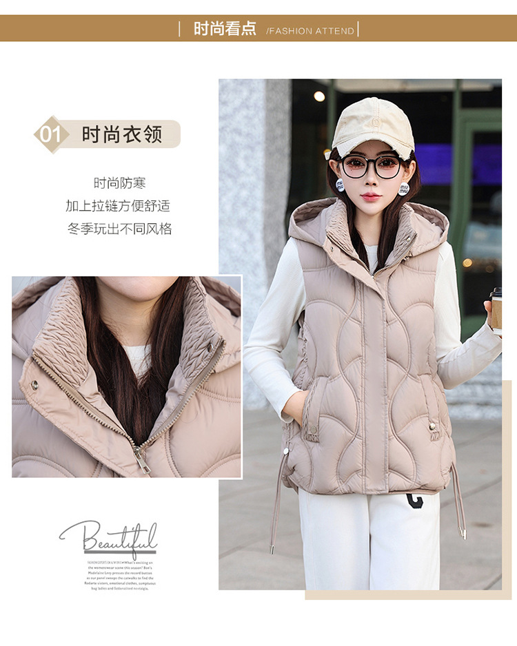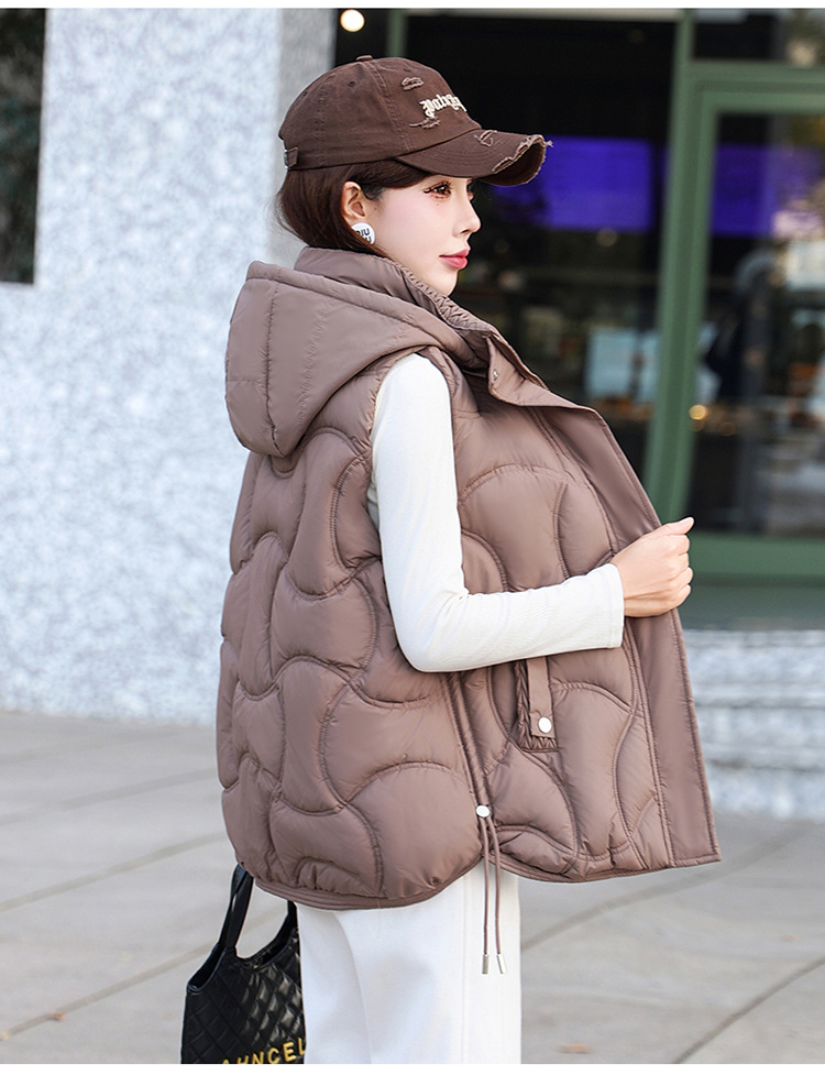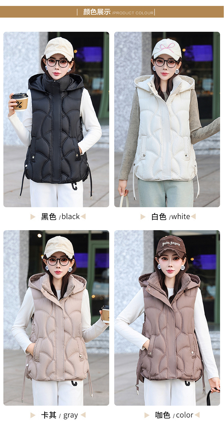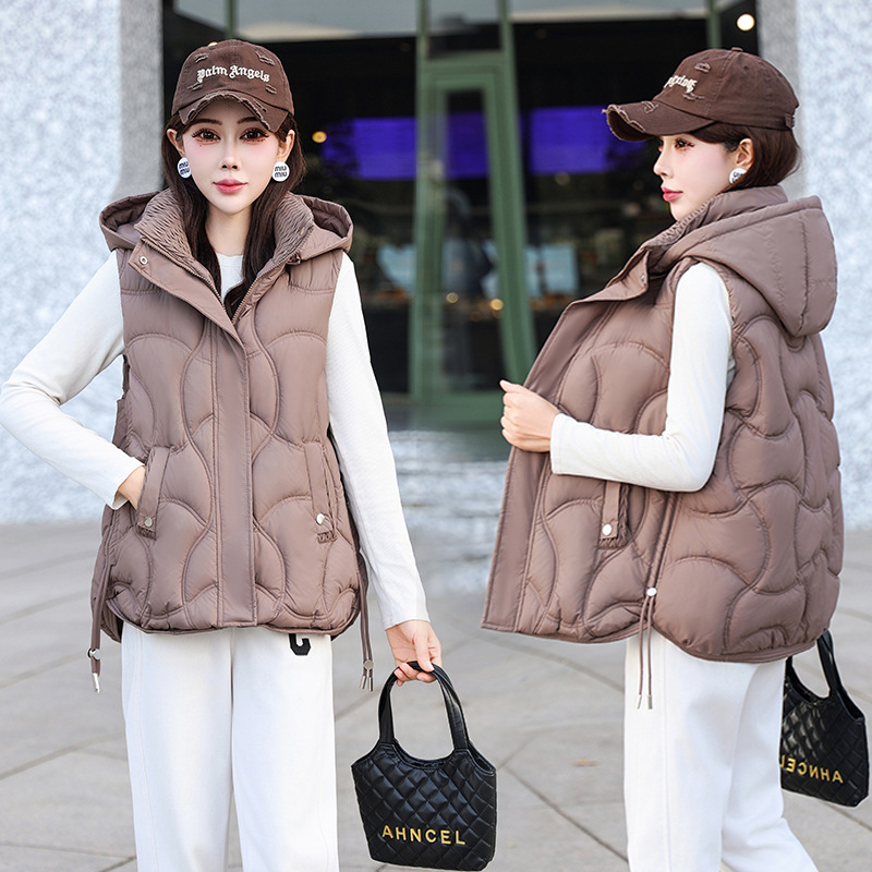 대형 포켓 스탠드 칼라 후드 조끼 여성의 새로운 가을과 겨울 따뜻한 외국 스타일 양복 조끼 느슨한 올 매치 중간 길이 면화 조끼