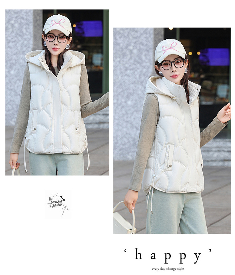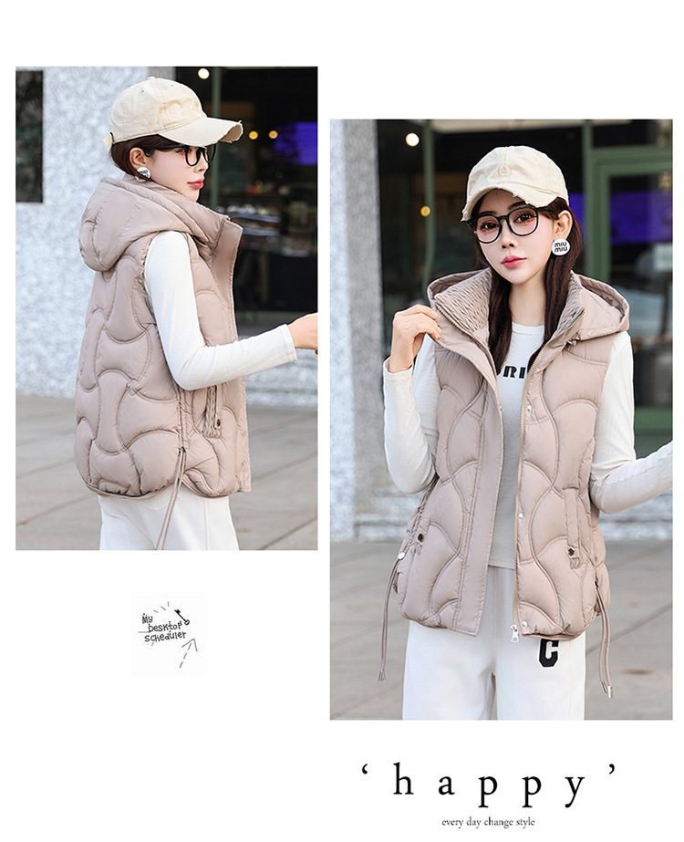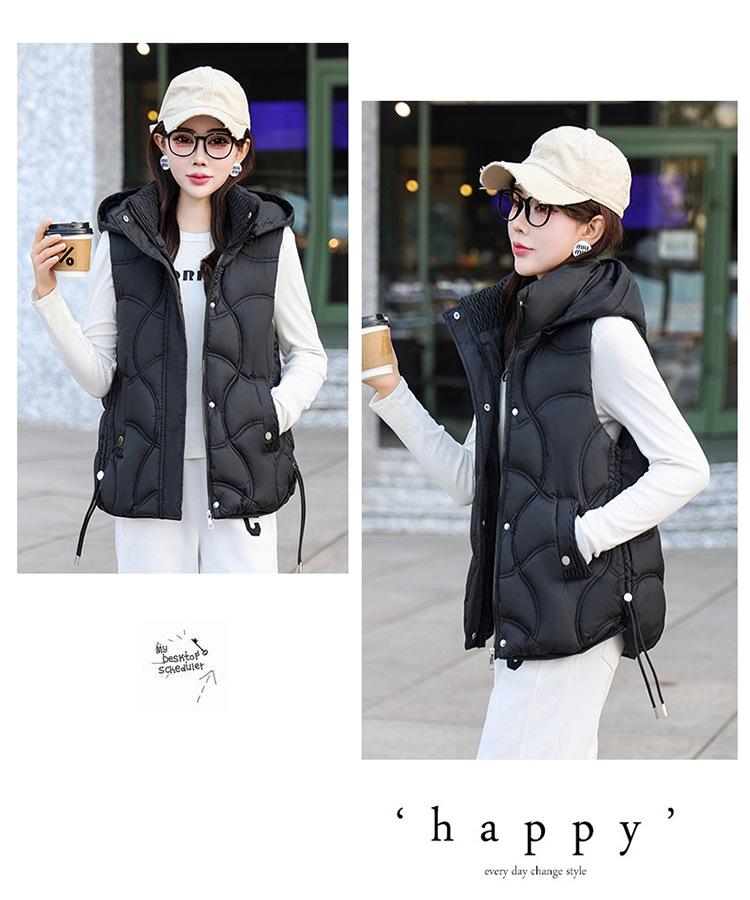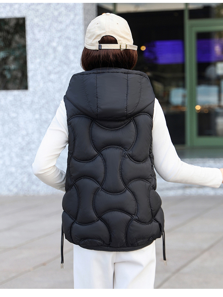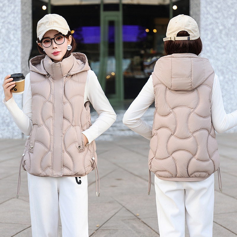 대형 포켓 스탠드 칼라 후드 조끼 여성의 새로운 가을과 겨울 따뜻한 외국 스타일 양복 조끼 느슨한 올 매치 중간 길이 면화 조끼