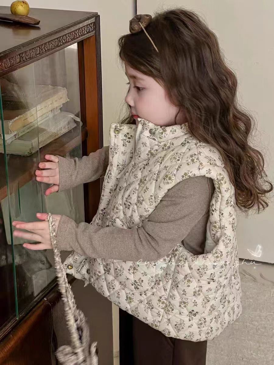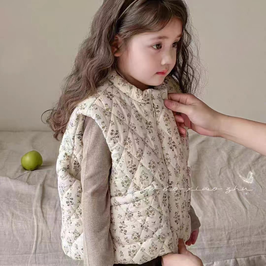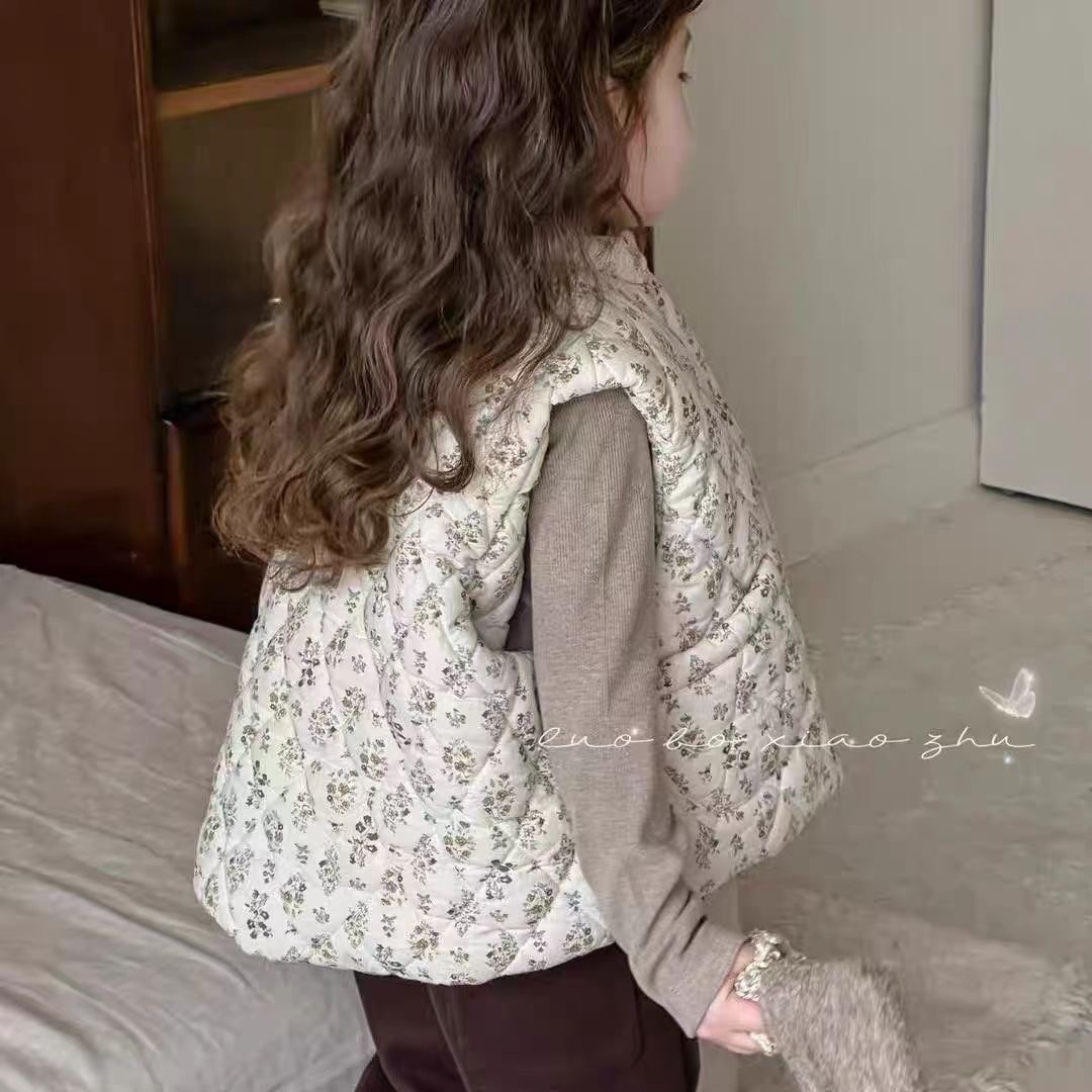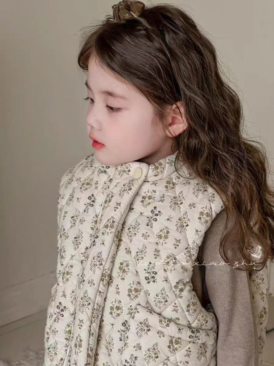 소녀 가을과 겨울 조끼 24 년 꽃 아기 소녀 민소매 외부 착용 슈퍼 귀여운 유치원 면화 따뜻한 면화 재킷 조끼