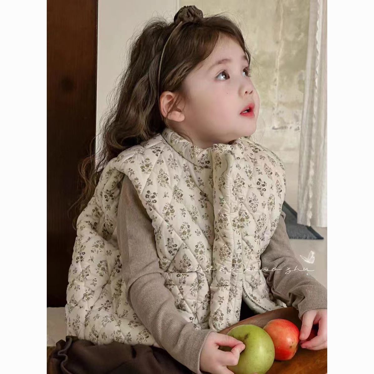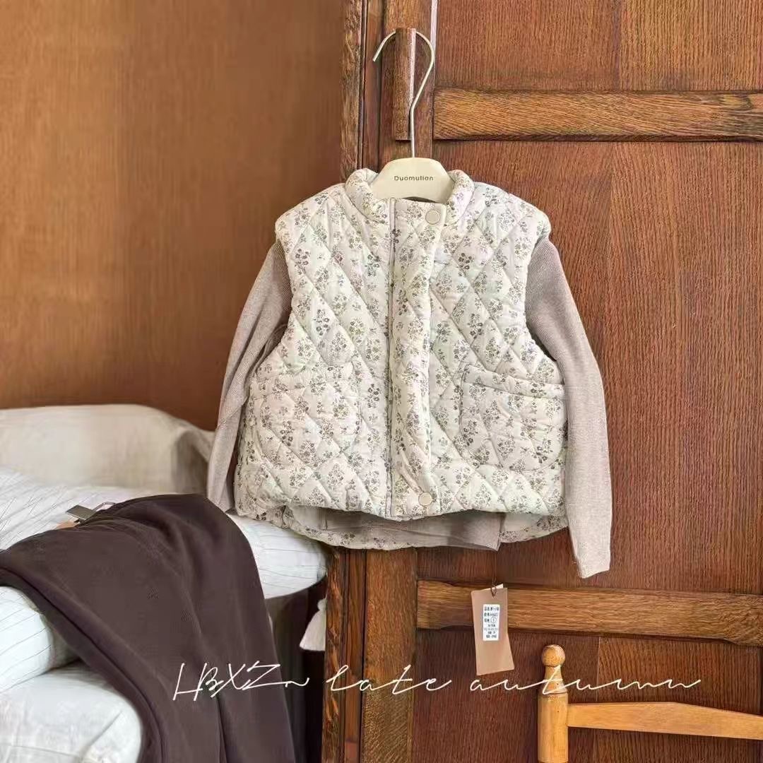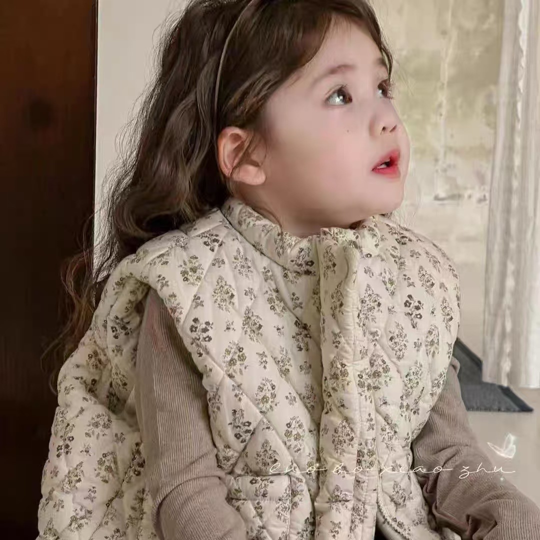 소녀 가을과 겨울 조끼 24 년 꽃 아기 소녀 민소매 외부 착용 슈퍼 귀여운 유치원 면화 따뜻한 면화 재킷 조끼스토어 가기