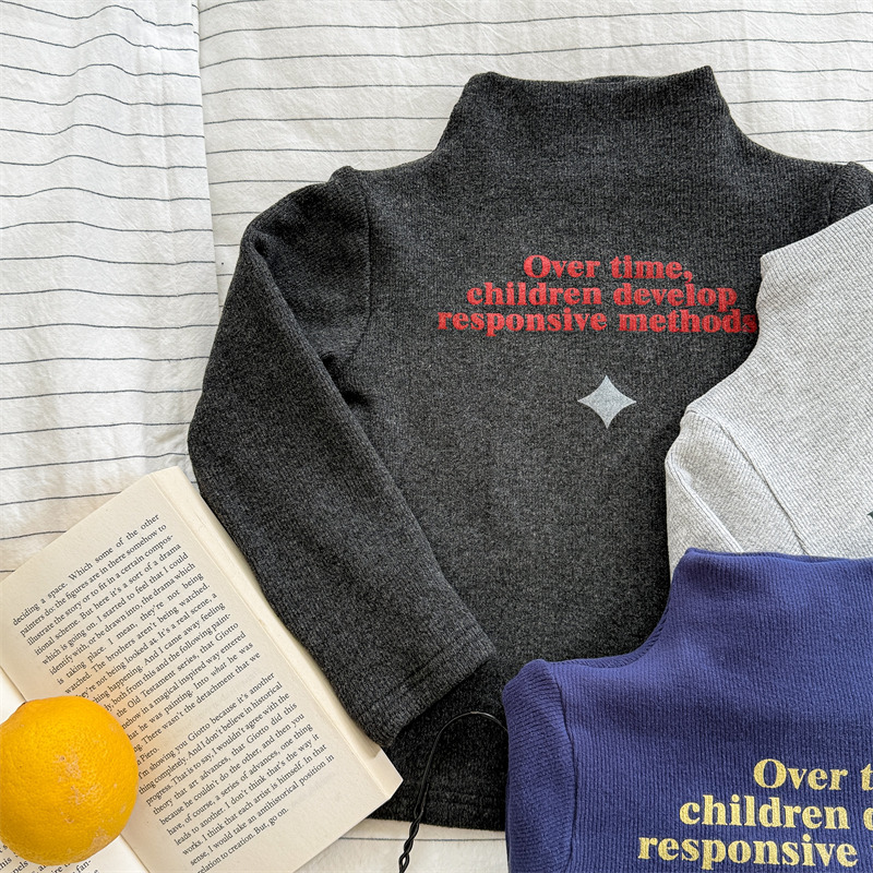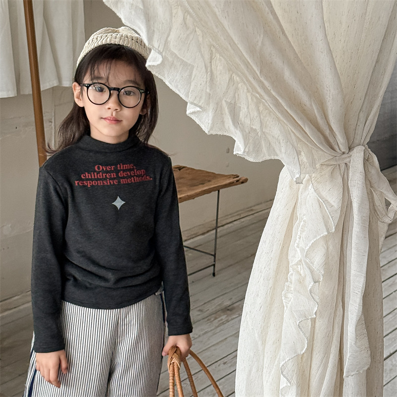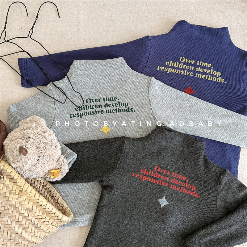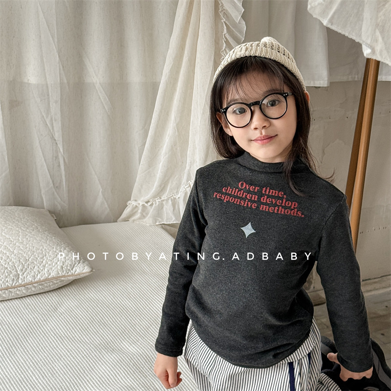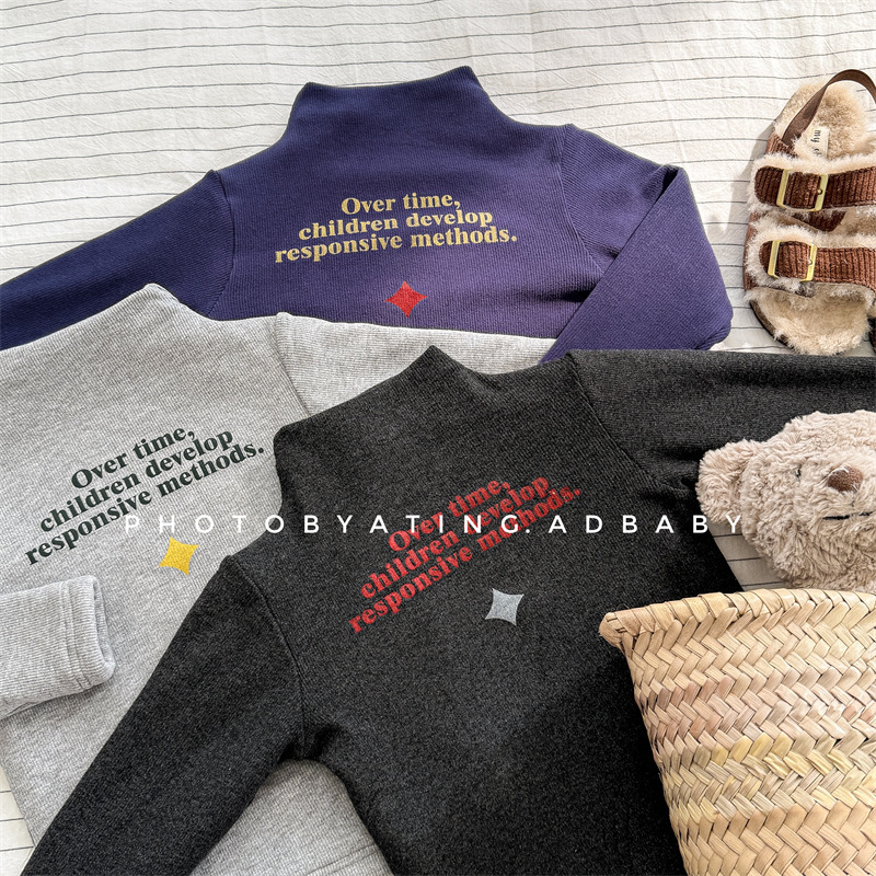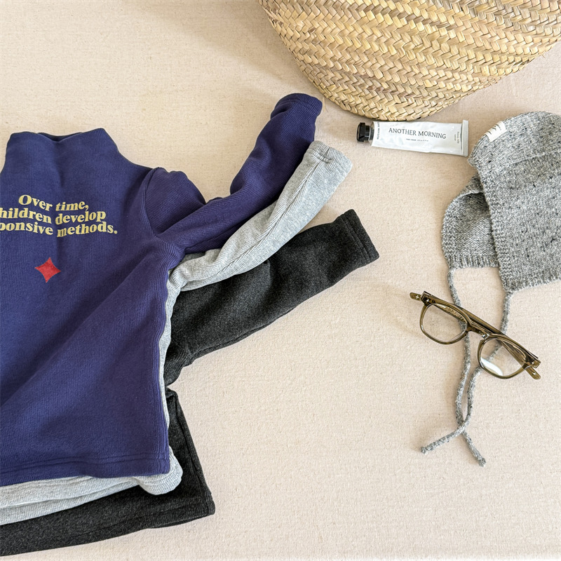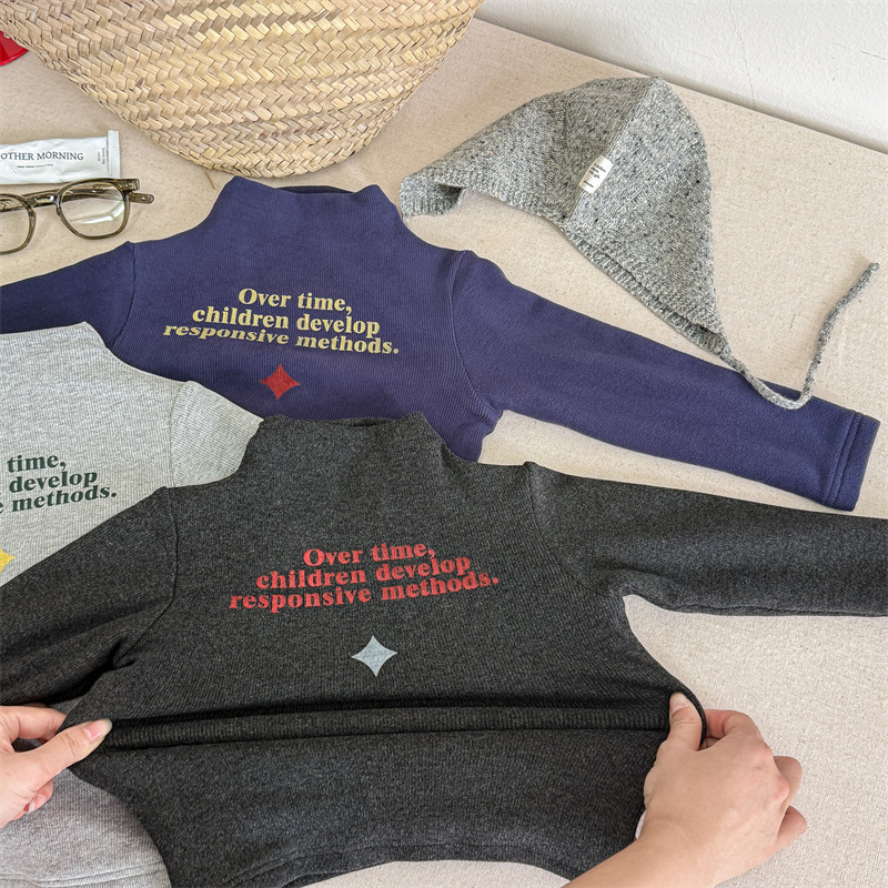 2025 아동복 겨울옷 어린이 한국 스타일 하이넥 티셔츠 여아용 남아용 겨울용 따뜻한 긴팔 이너웨어 5718