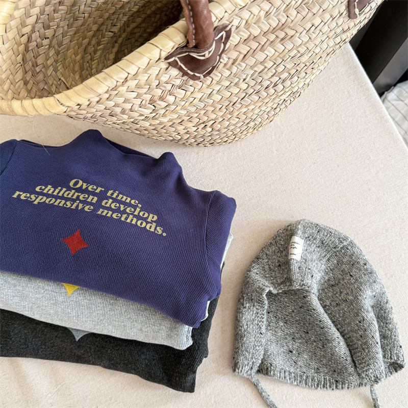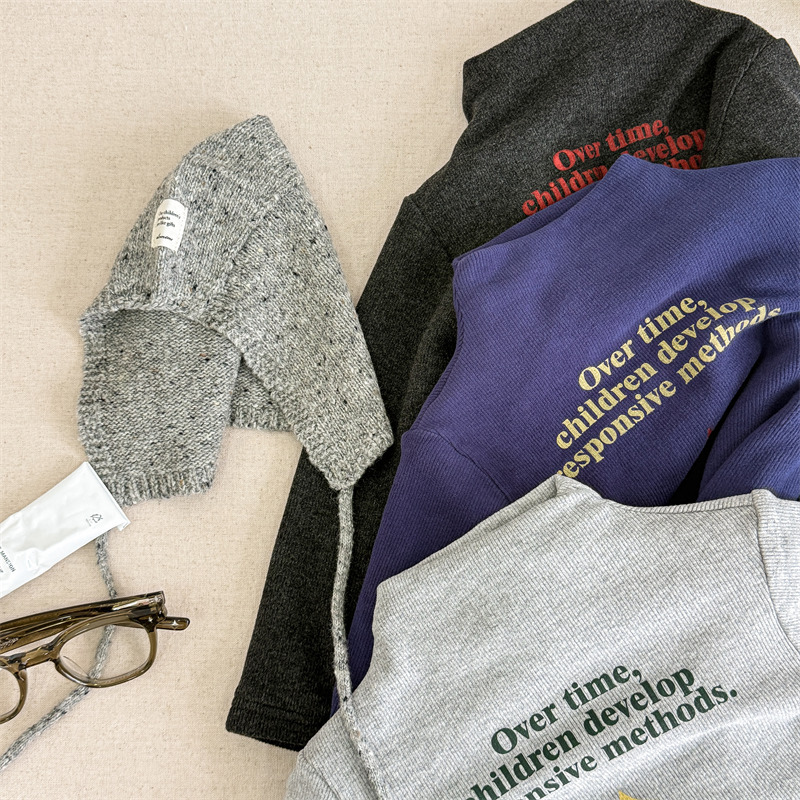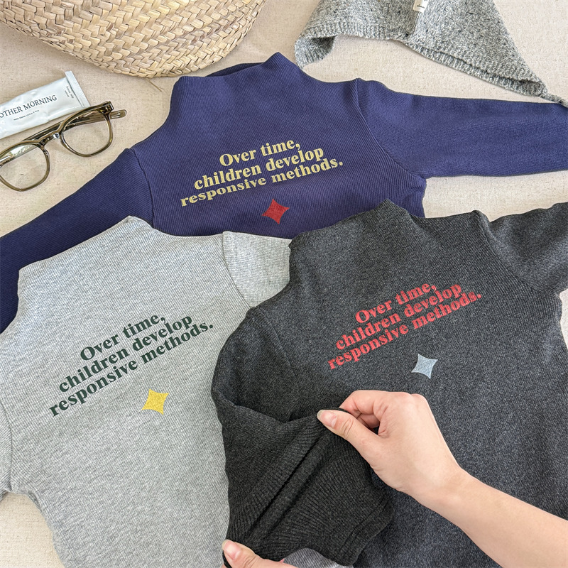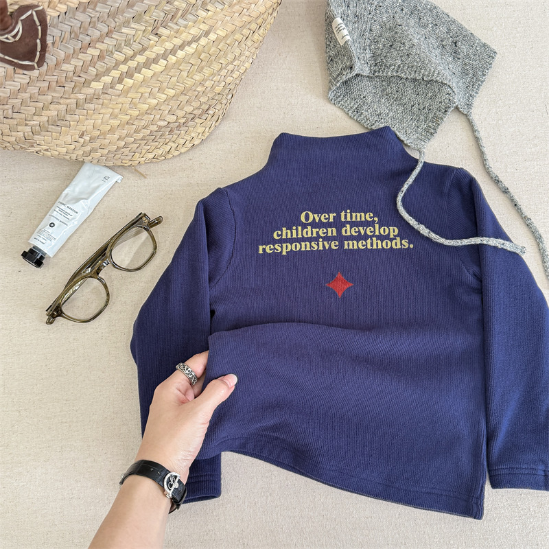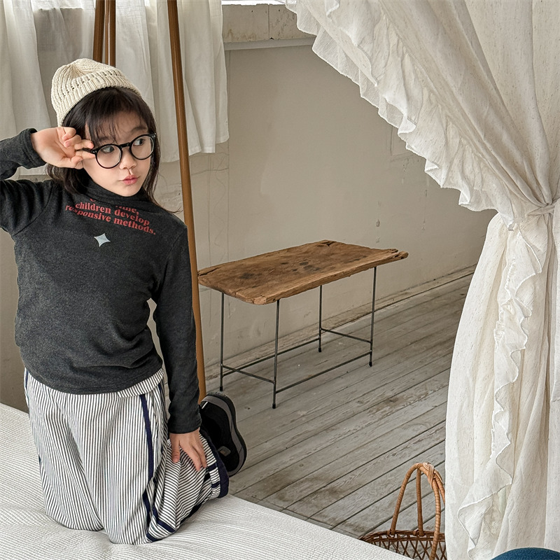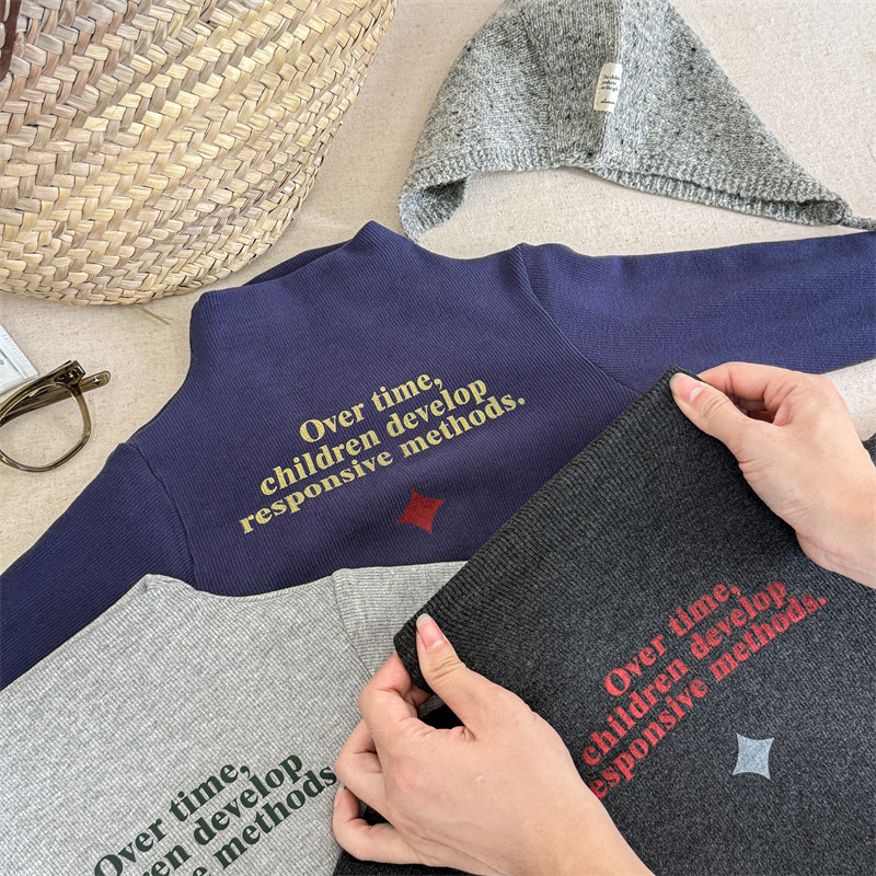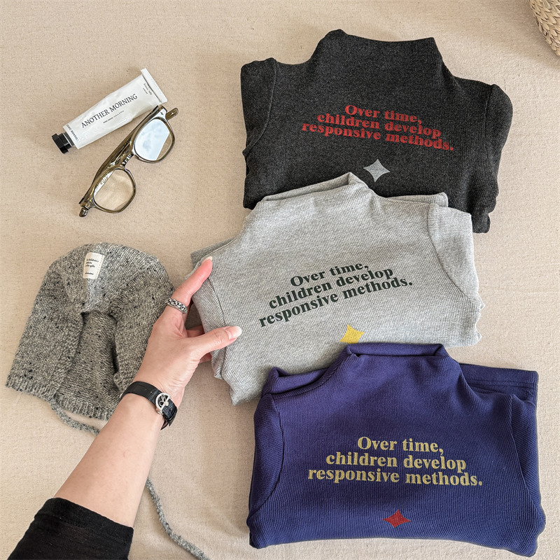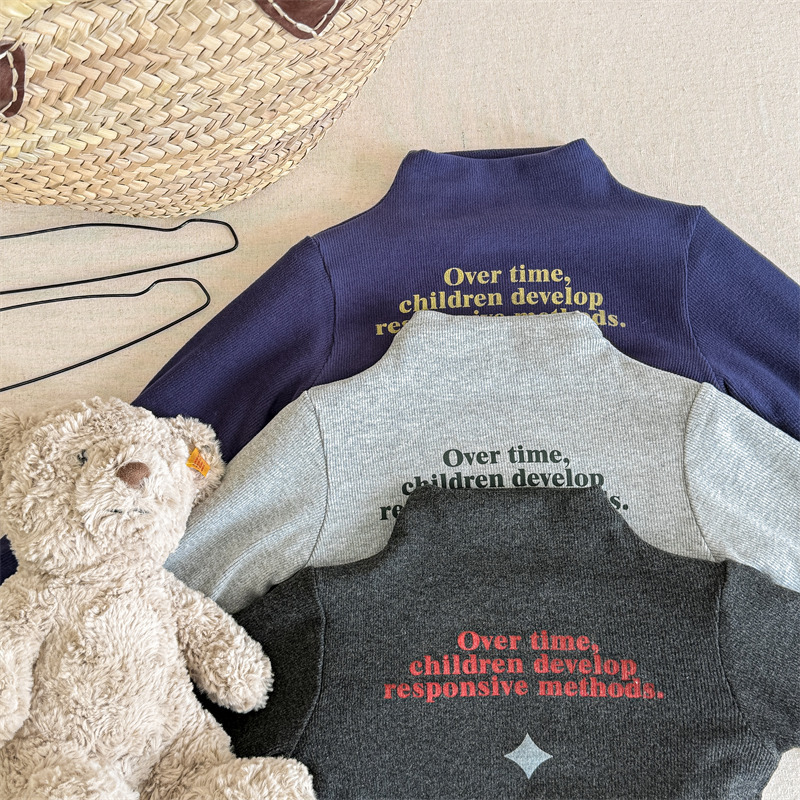2025 아동복 겨울옷 어린이 한국 스타일 하이넥 티셔츠 여아용 남아용 겨울용 따뜻한 긴팔 이너웨어 5718