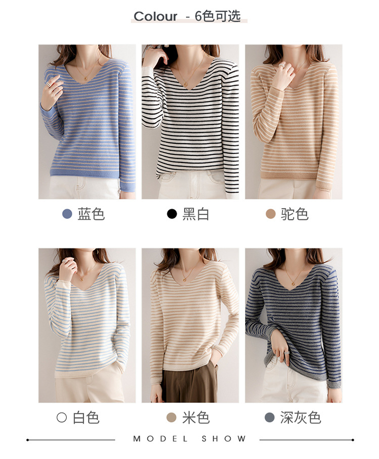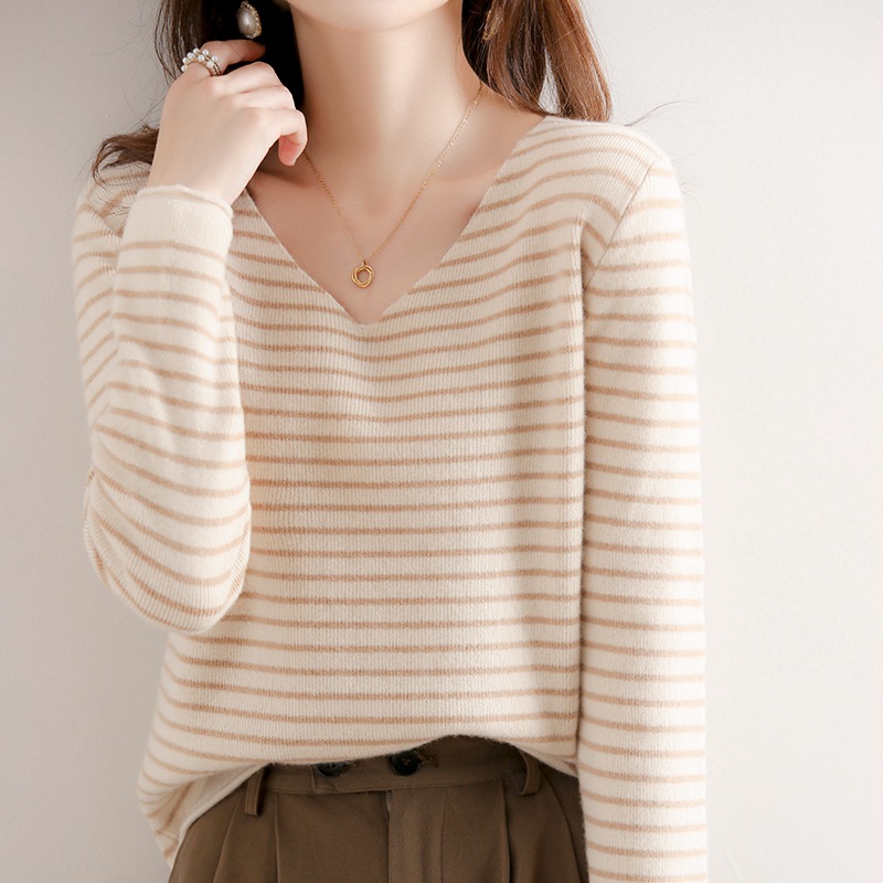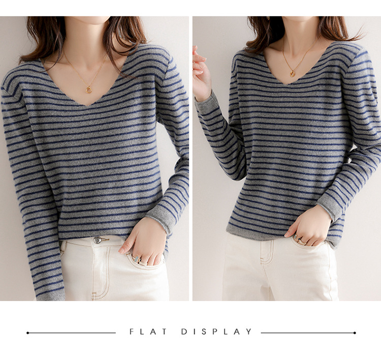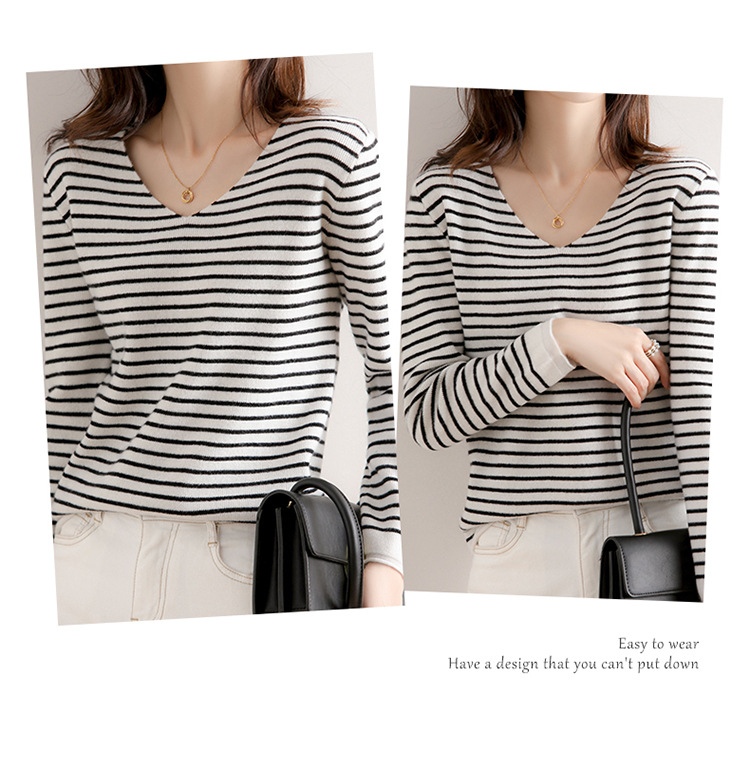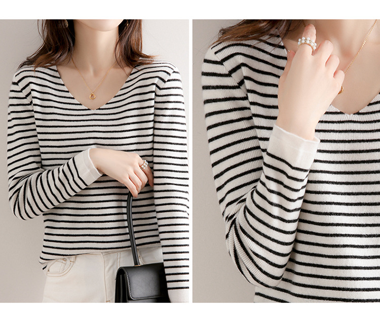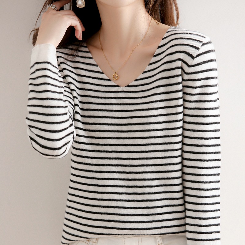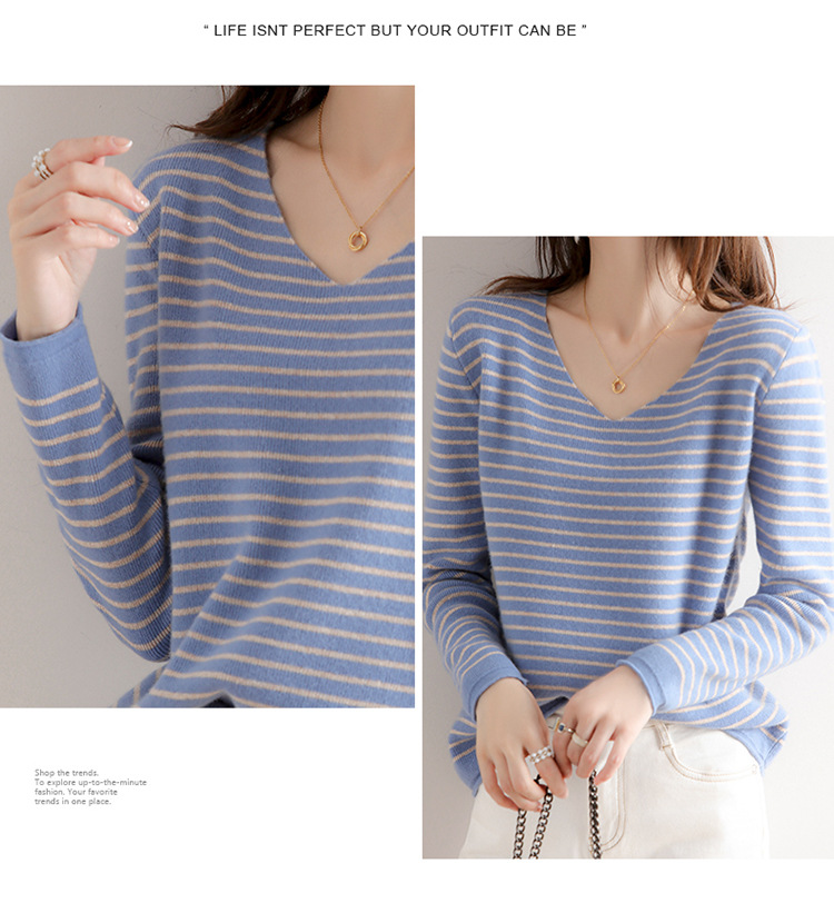 스트라이프베이스 셔츠 여성용 긴팔 봄 가을 겨울 새로운 도착 스웨터 여성용 루즈 V 넥 탑 쇼트 트렌디 스웨터스토어 가기