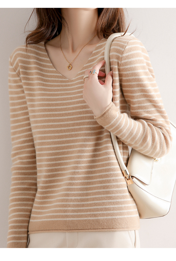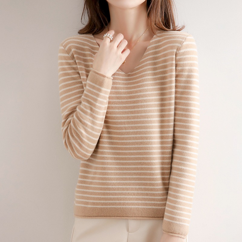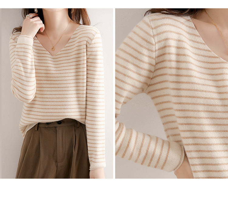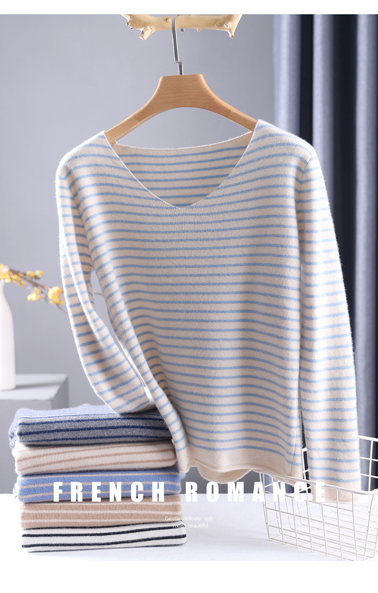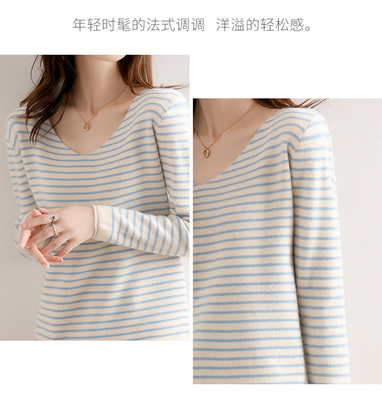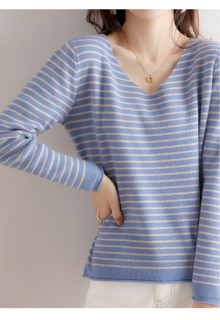 스트라이프베이스 셔츠 여성용 긴팔 봄 가을 겨울 새로운 도착 스웨터 여성용 루즈 V 넥 탑 쇼트 트렌디 스웨터스토어 가기