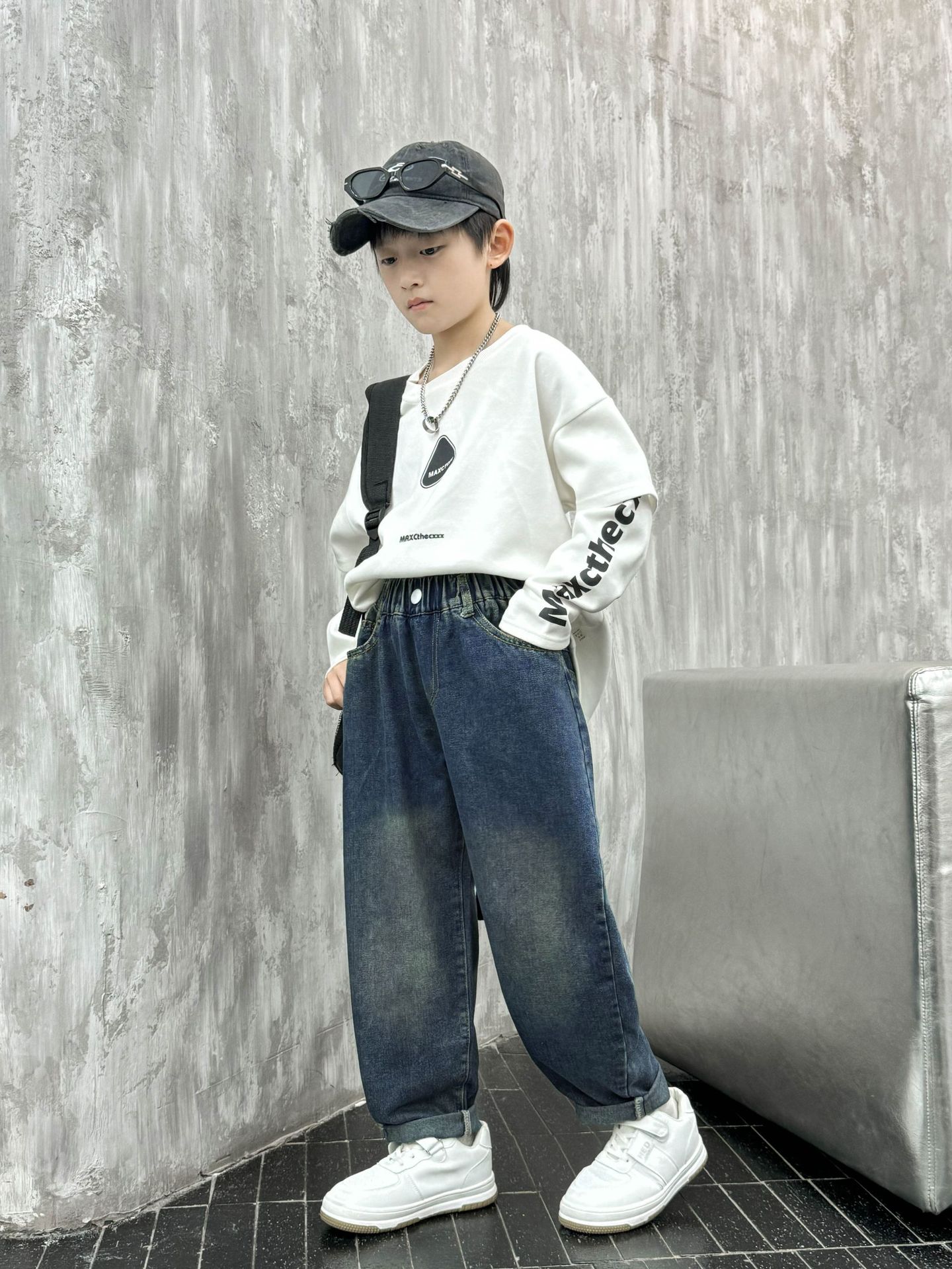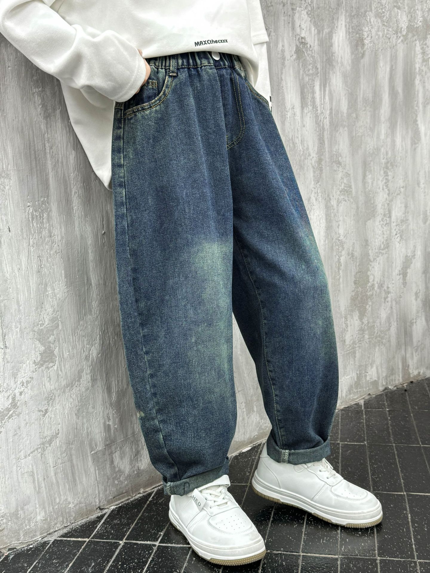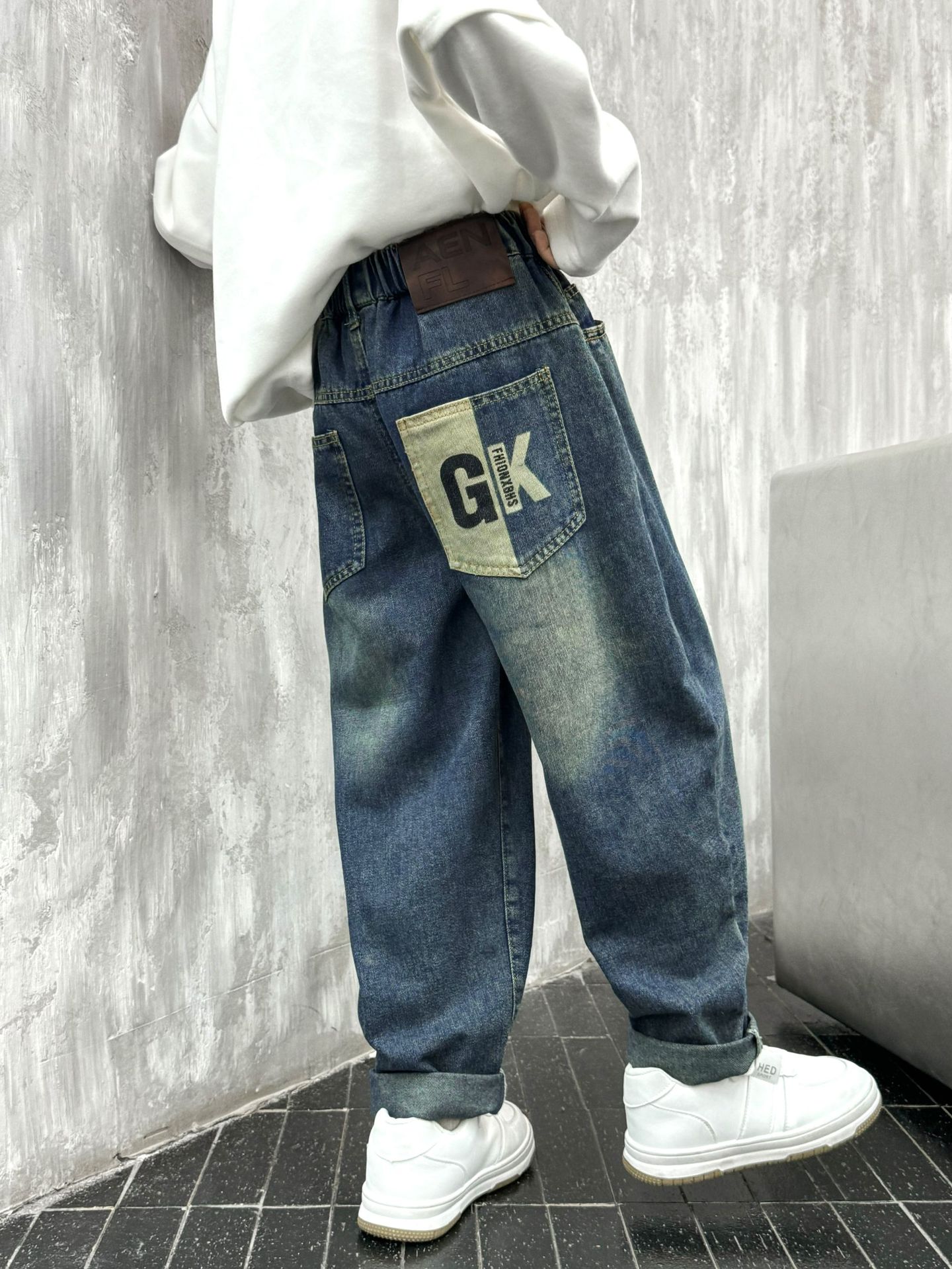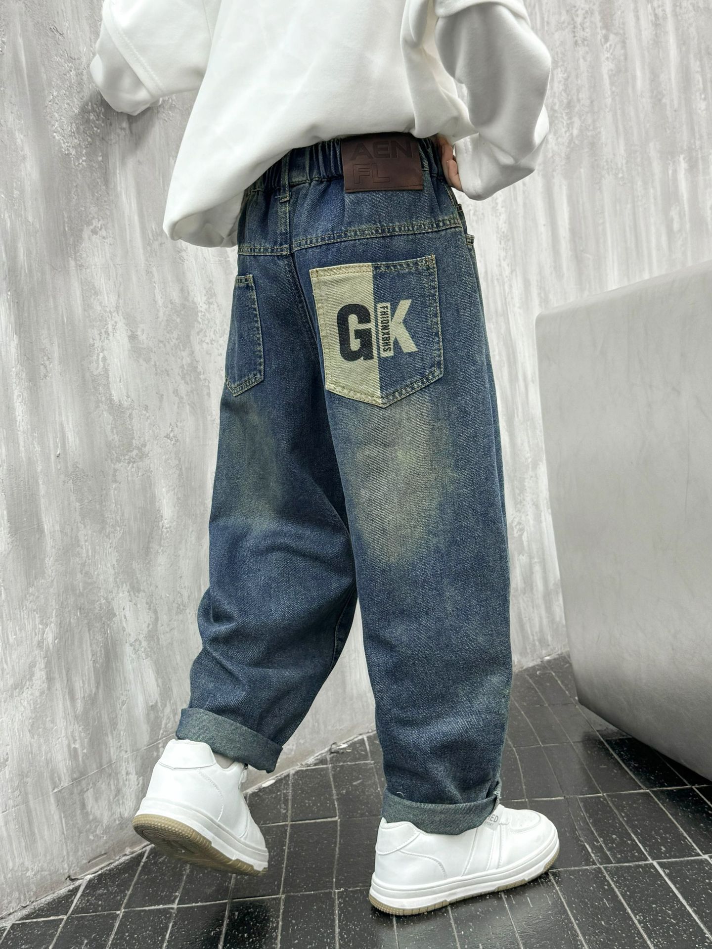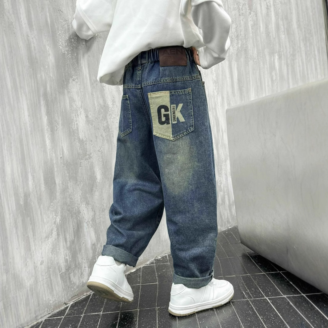 아동복 소년 봄 바지 2025 새로운 어린이 가을 중대형 어린이 바지 봄 가을 소년 청바지 유행스토어 가기