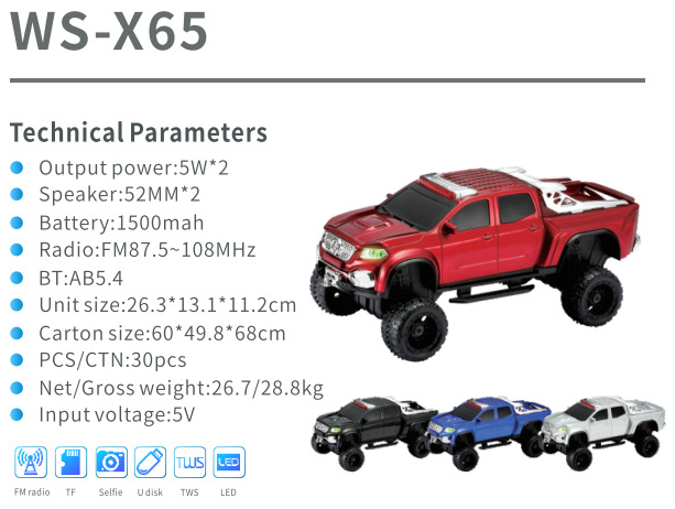 WS-X65 오프로드 차량 자동차 모양 블루투스 오디오 장식품 창조적 인 액세서리 무선 블루투스 자동차 모델 미니 스테레오