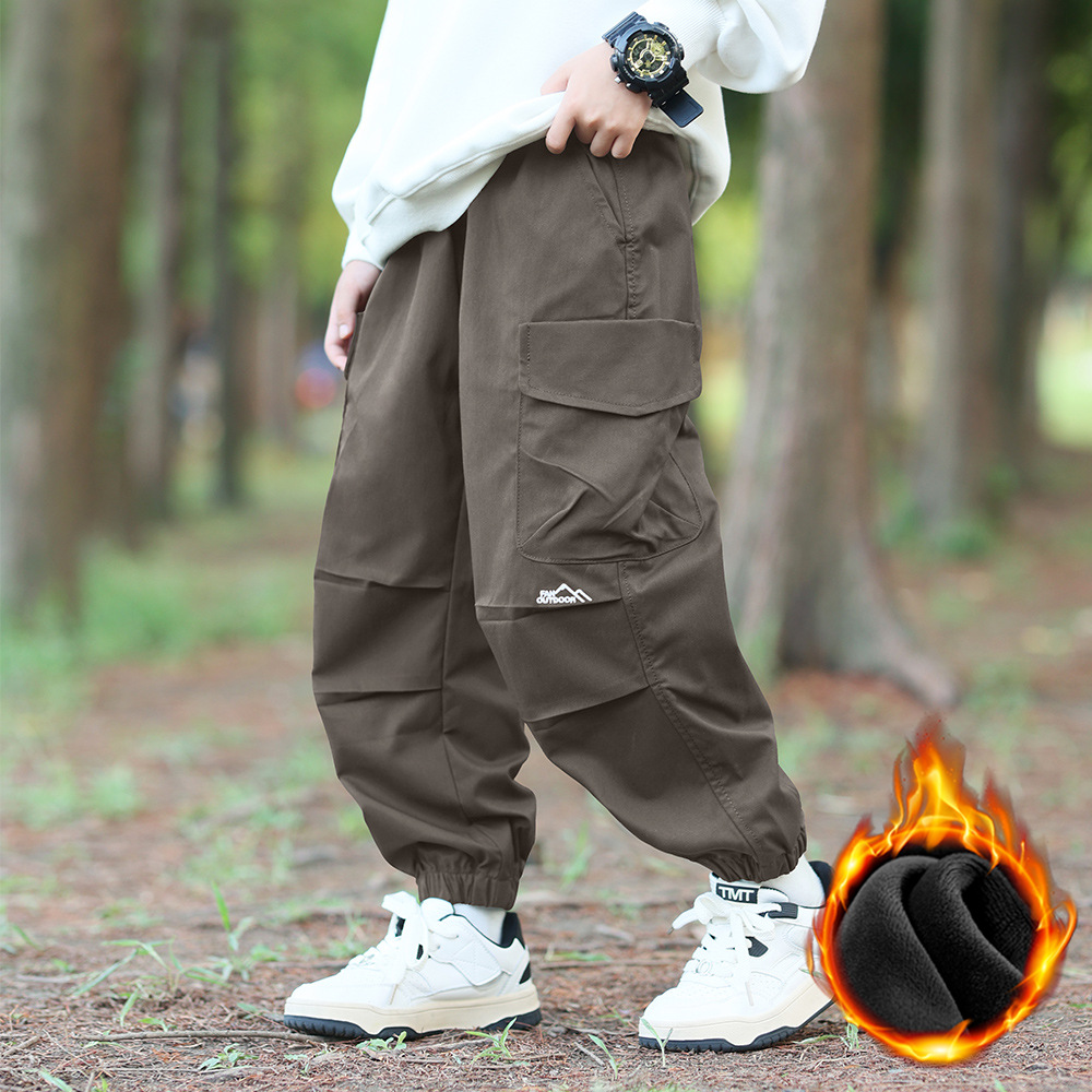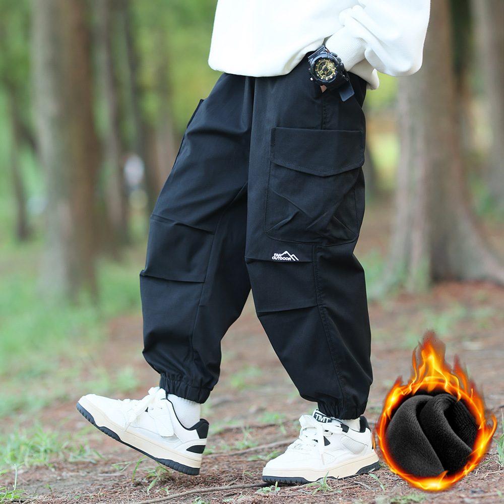 어린이 바지 어린이 바지 소년 바지 2024 가을과 겨울 새로운 방풍 바지 큰 어린이 패션 기모 바지스토어 가기