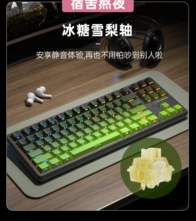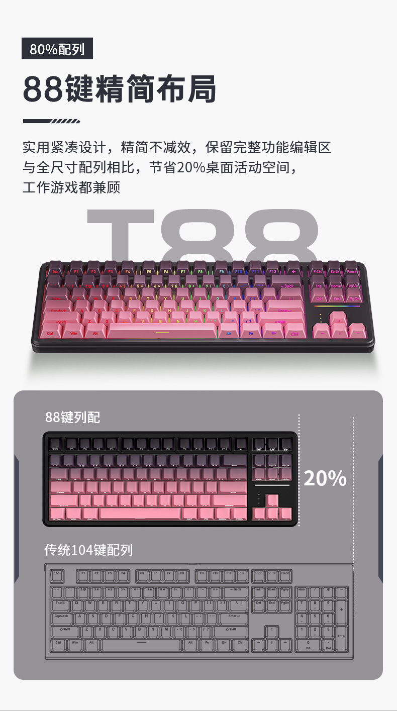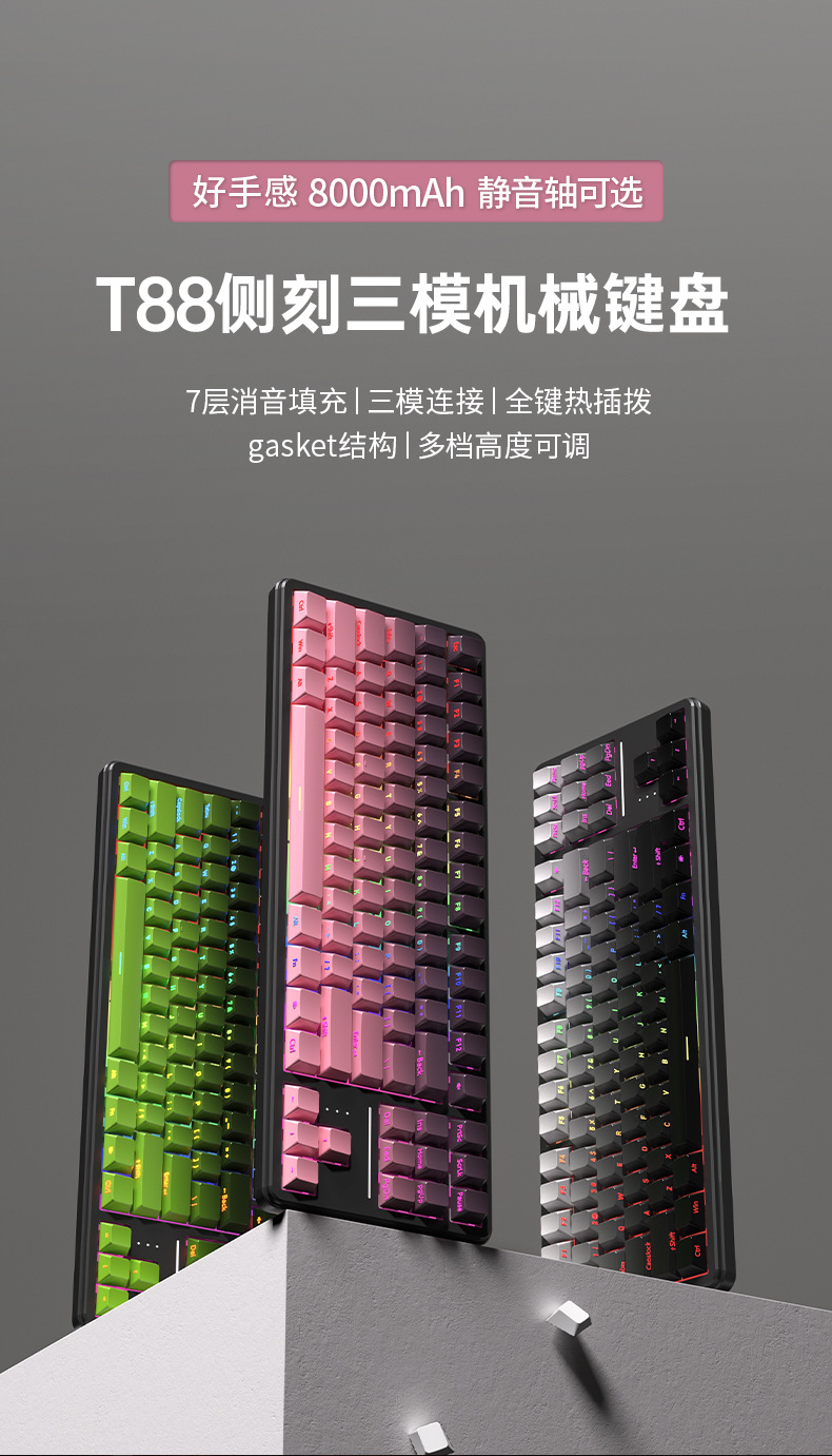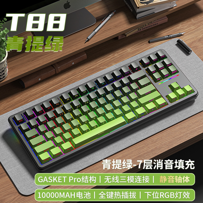 狼途T88客制化电竞机械键盘蓝牙三模超静音侧刻游戏办公无线键盘
