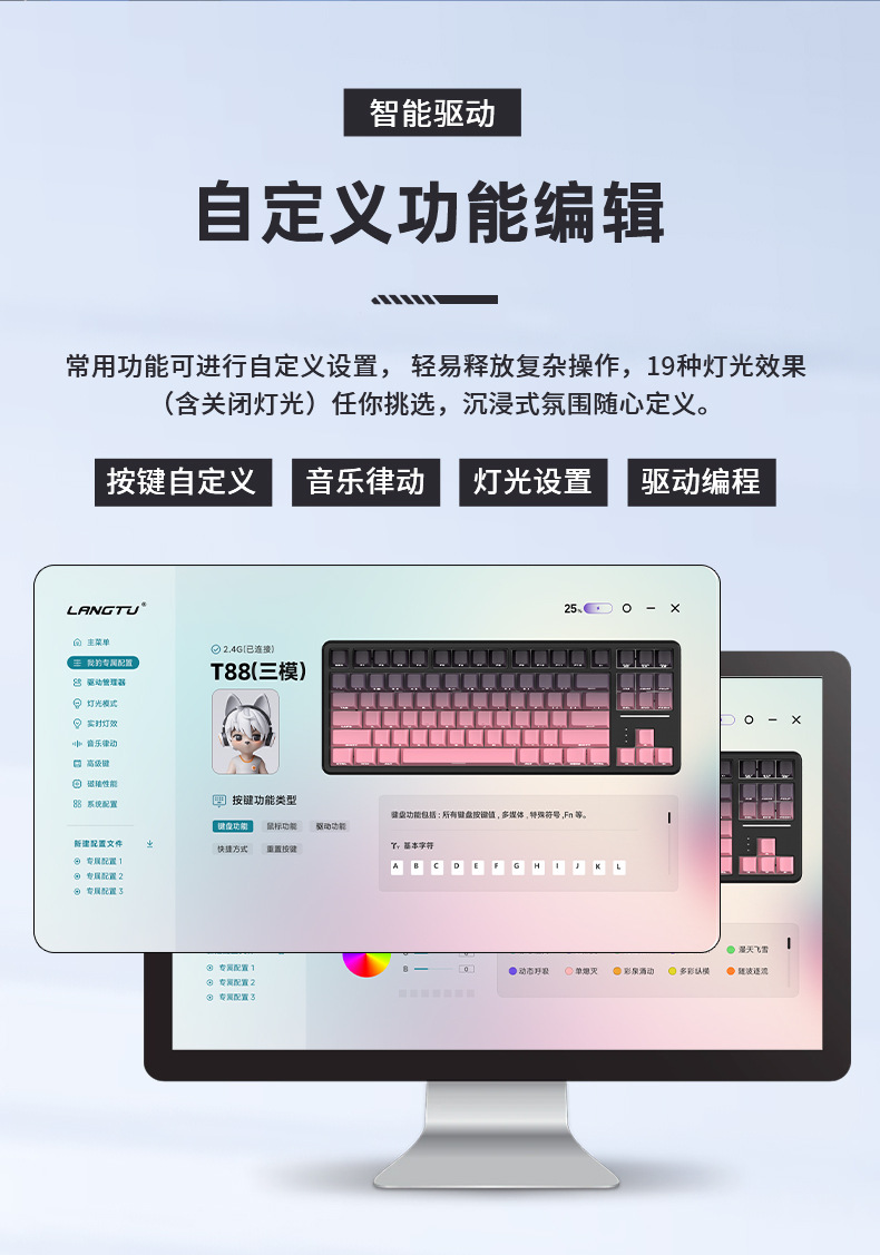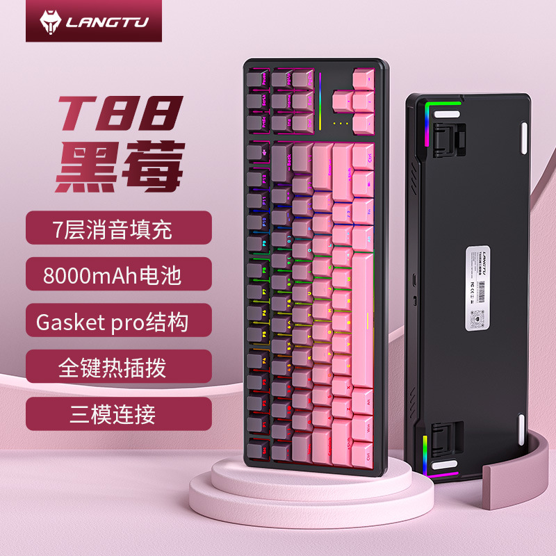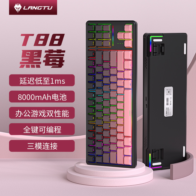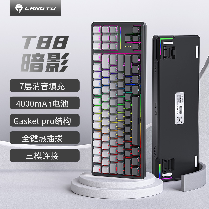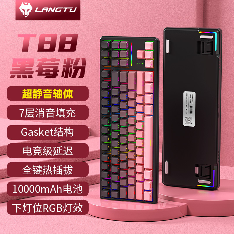 Langtu T88 맞춤형 전자 스포츠 기계 키보드 블루투스 3 모드 울트라 조용한 측면 새겨진 게임 사무실 무선 키보드