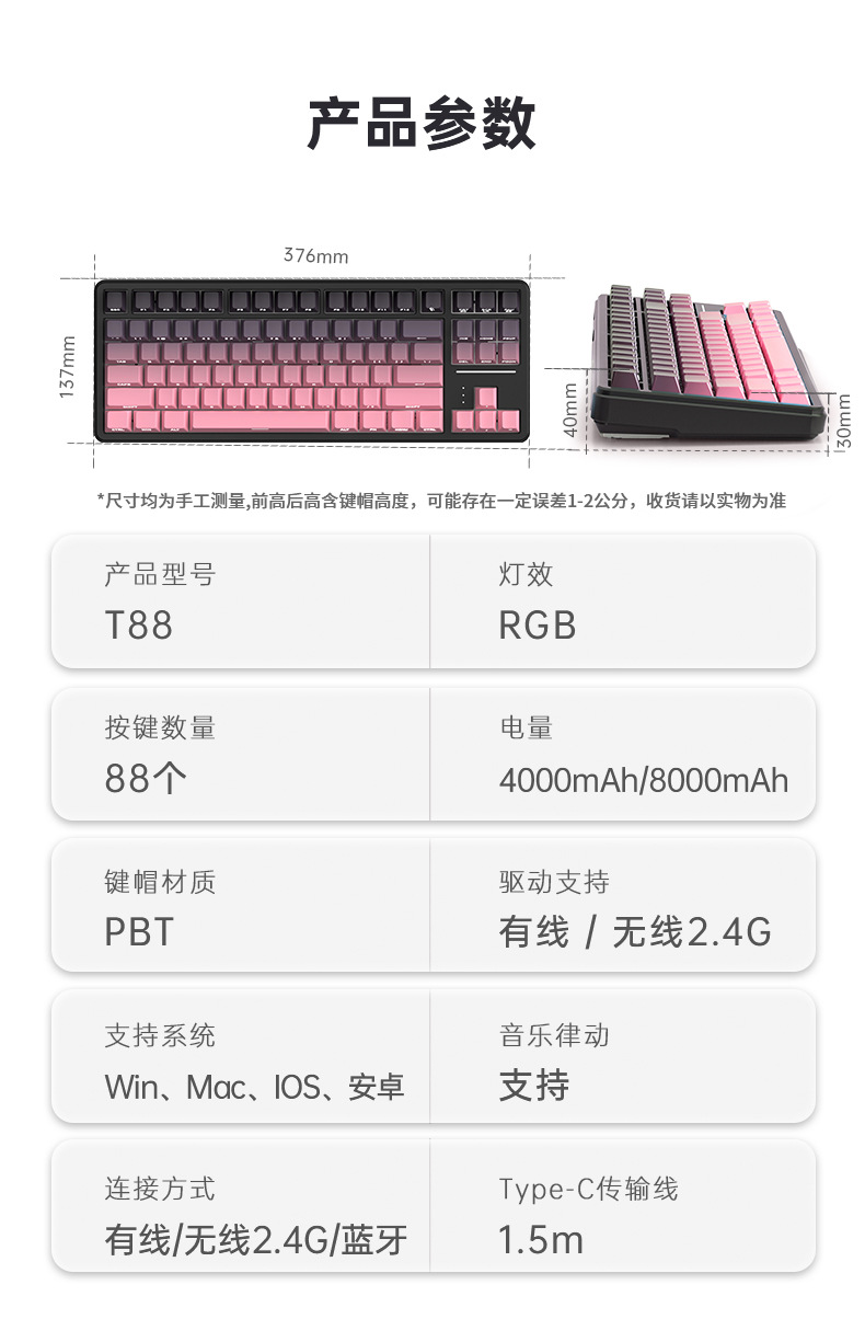键盘尺寸:376*173*40mm
