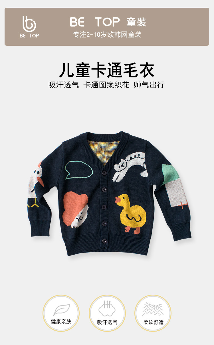 한국판 가을 신상 2026 아동용 스웨터 만화 캐릭터 트렌디 브랜드 남아 니트 가디건 해외 아동복 직배송스토어 가기