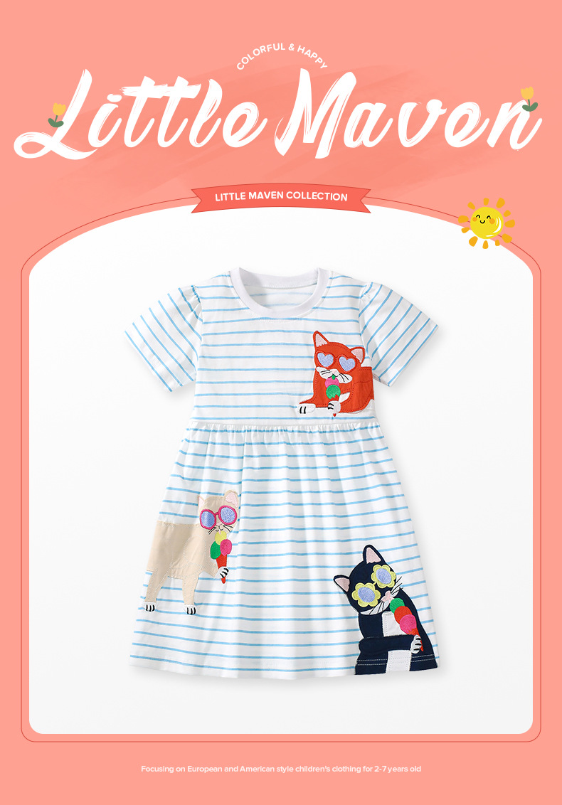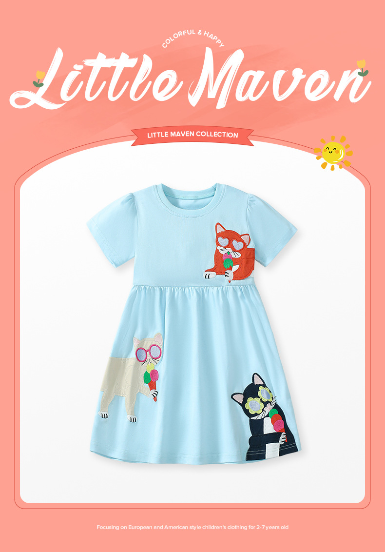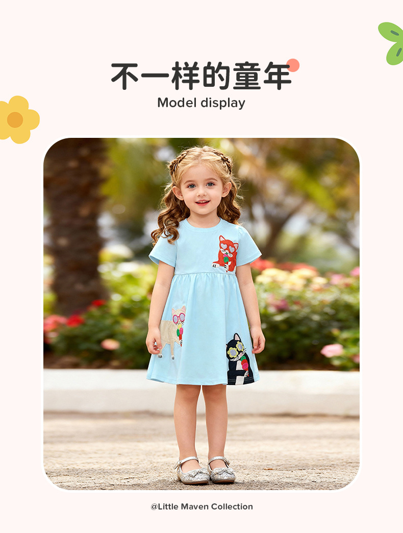 소스 공장 국경 간 공급 새로운 순면 반팔 어린이 드레스 여름 반팔 소녀 스커트스토어 가기