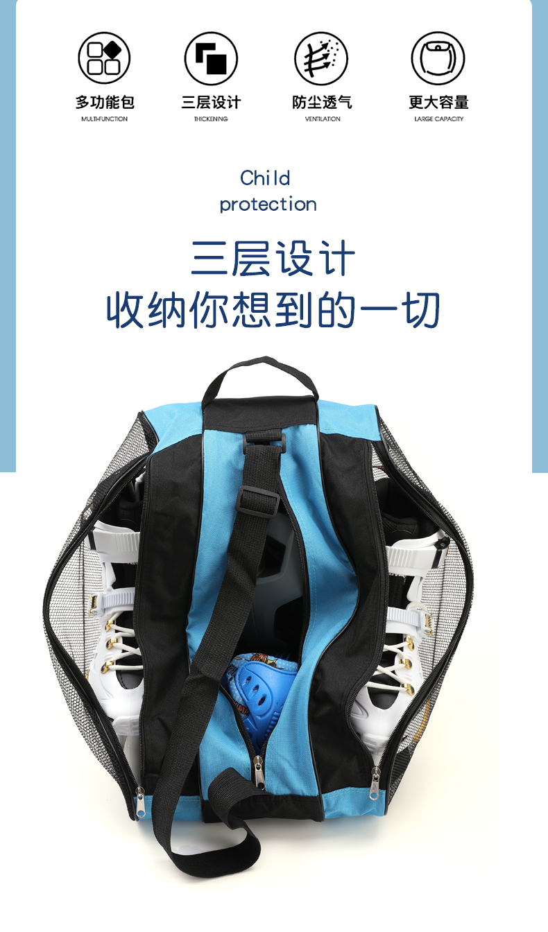 Zhenku 어린이 롤러 스케이트 3 층 스케이트 장비 저장 가방 두꺼운 방수 어깨 성인 롤러 스케이트 백 구름스토어 가기