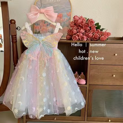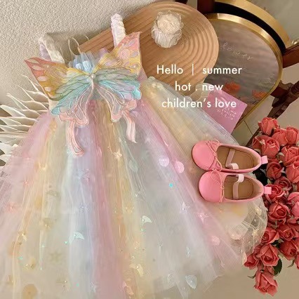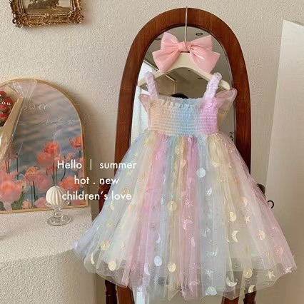 소녀 원피스 여름 2024 새로운 어린 소녀 세련된 슬링 생일 원피스 여름 어린이 공주 원피스