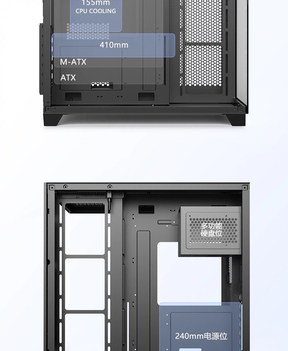 시뷰 룸 PRO 파노라마 칼럼 무료 컴퓨터 섀시 데스크탑 atx 수냉식 측면 360 크로스-테두리스토어 가기