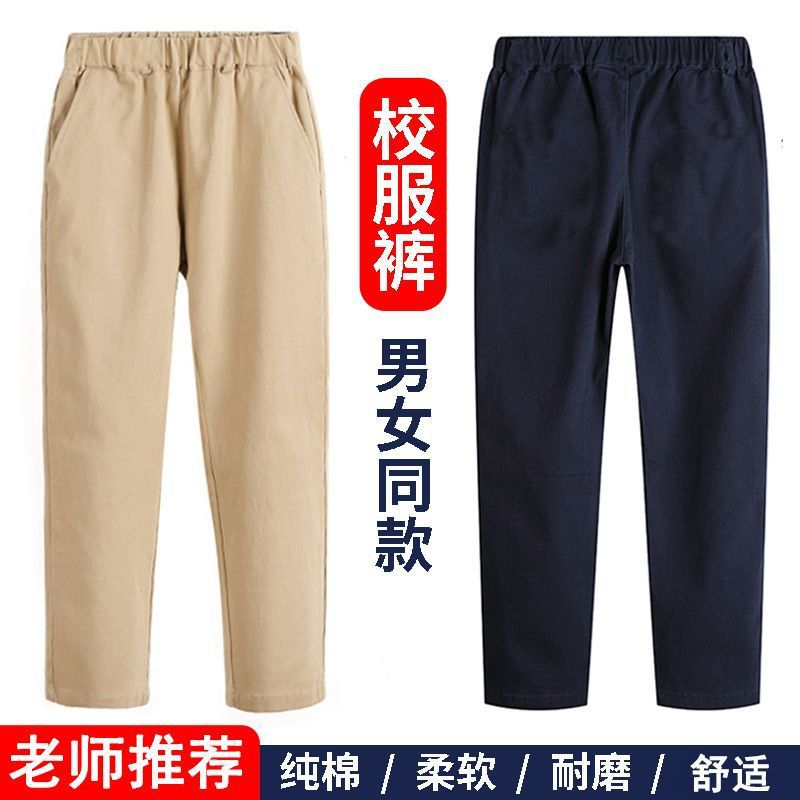 아동용 바지, 남아용 카키색 교복 바지, 봄 가을 남녀 아동용 네이비색 초등학생 신축성 허리밴드 공연용 교복 바지