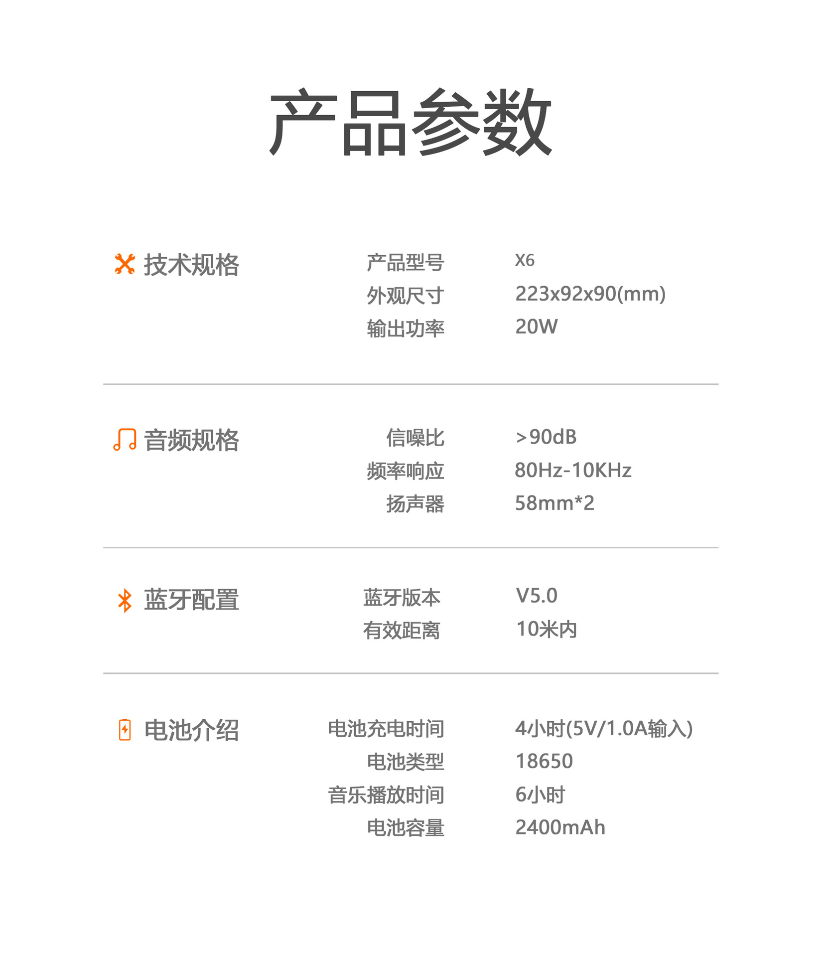 包装清单 :音箱*1 说明书*1 Tyep-c 充电线*1 音频线*1