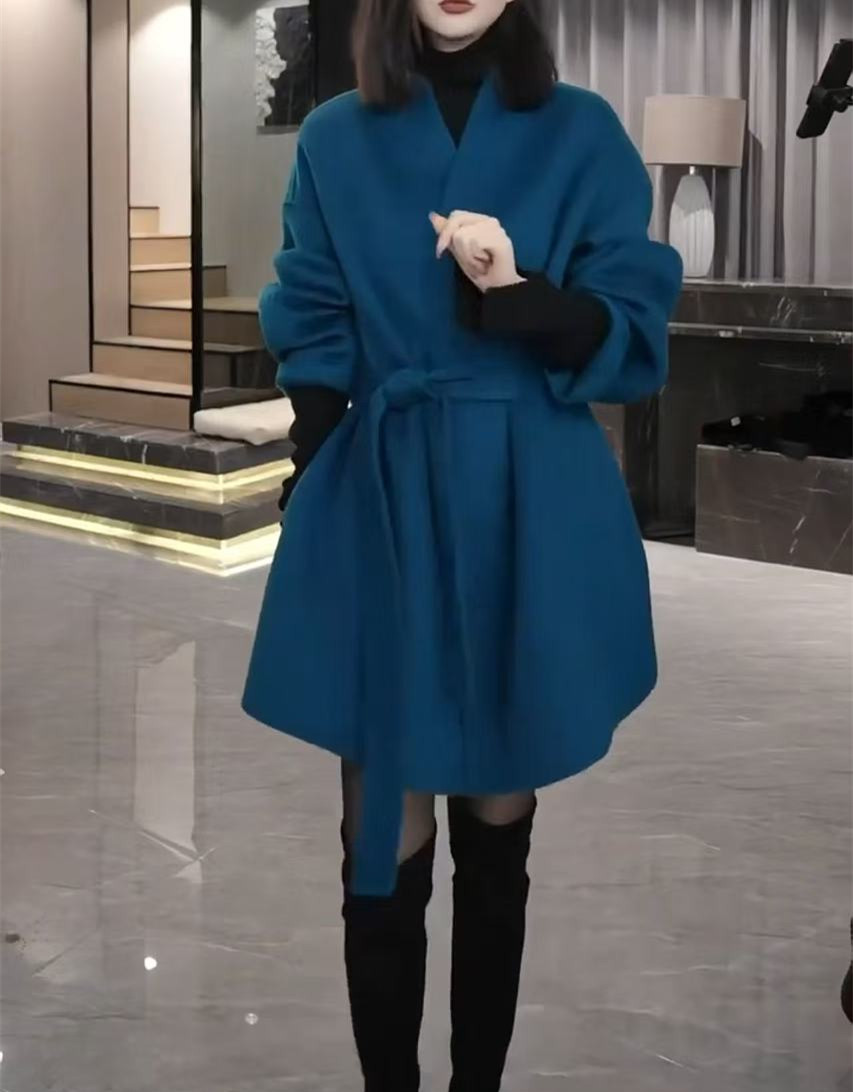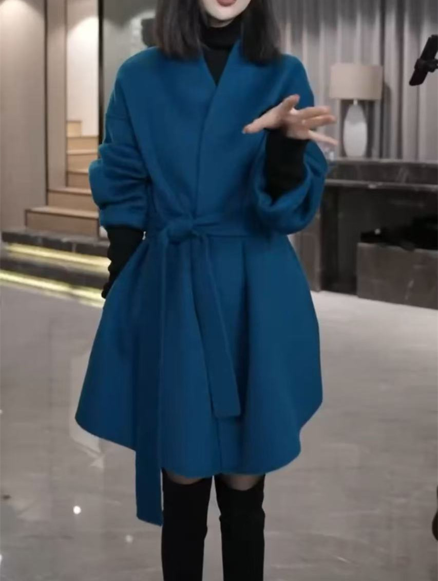 241120 다아이메이위안 2025 신상 심플하고 우아한 루즈핏 슬림핏 레이스업 모직 코트 단색 외투