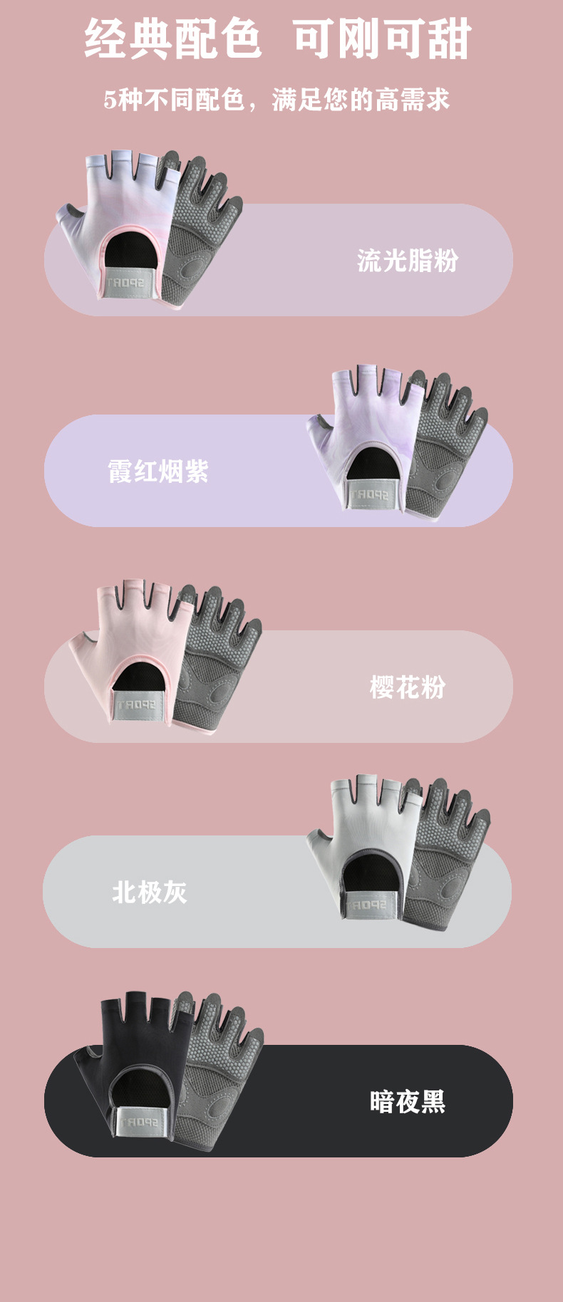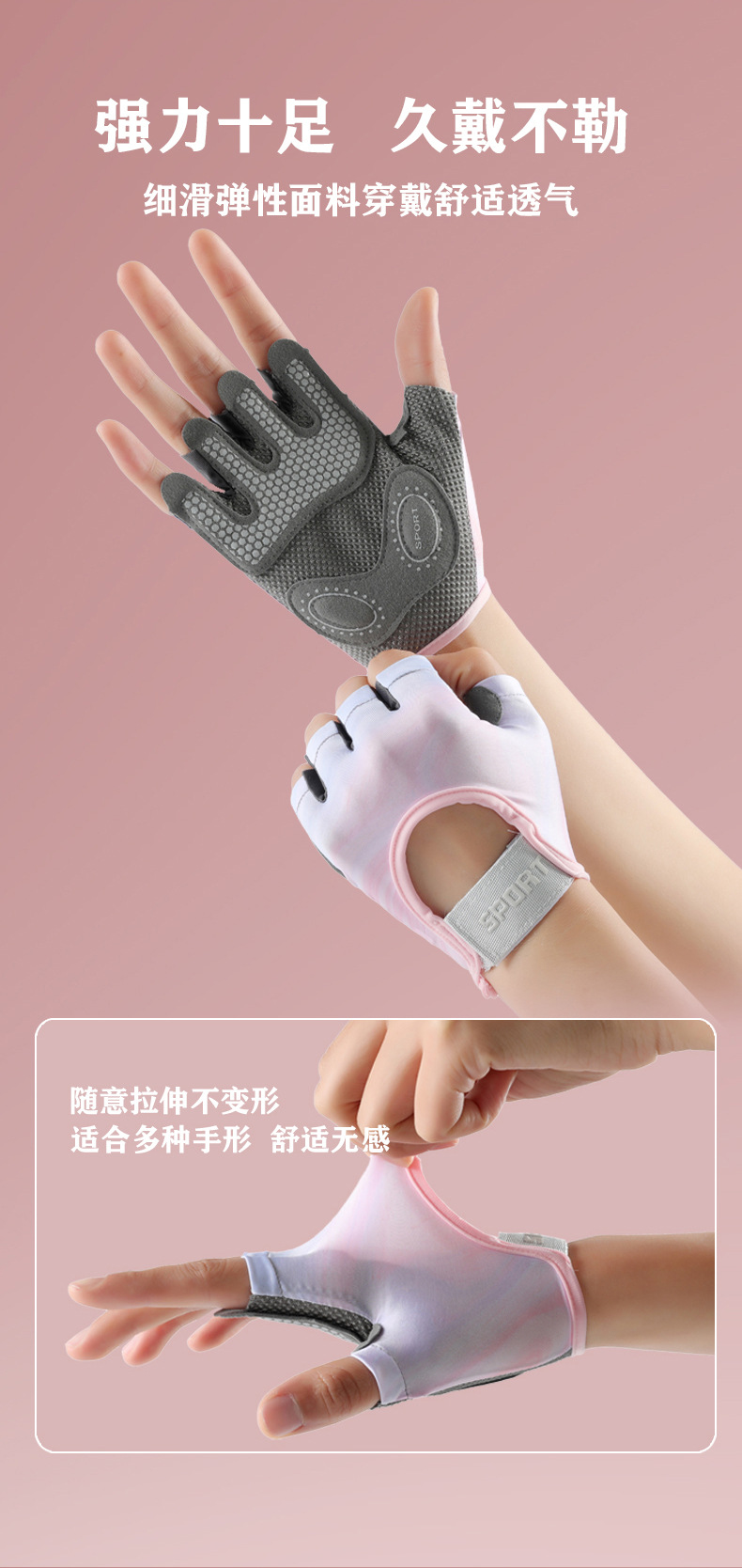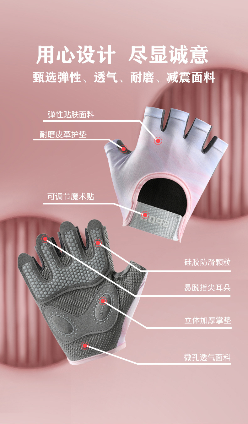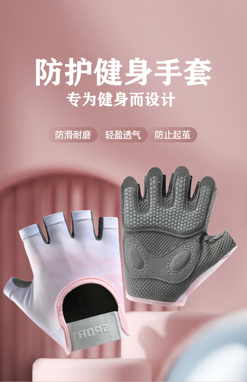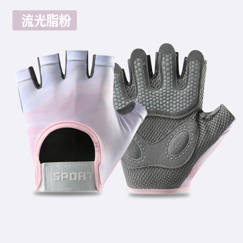 새로운 스포츠 장갑 여성용 요가 미끄럼 방지 충격 흡수 내마모성 통기성 누에 고치 피트니스 아이언 운동 하프 핑거 장갑스토어 가기