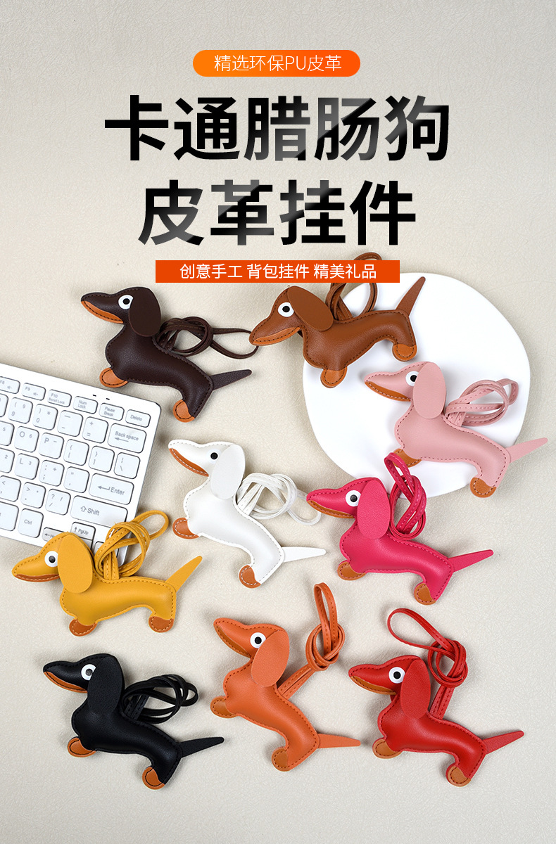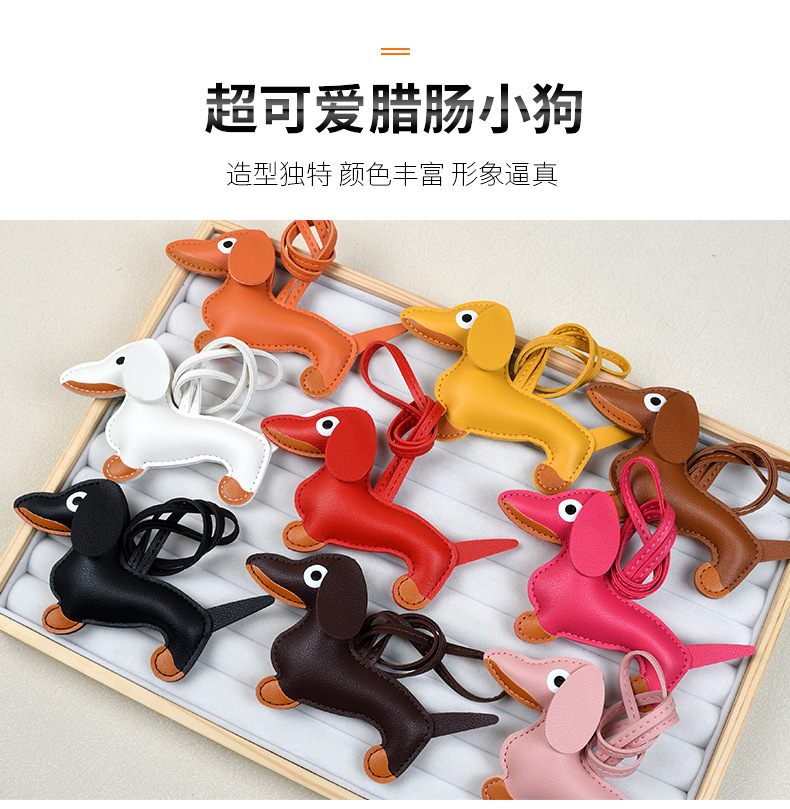 닥스훈트 열쇠고리 펜던트 만화 애완동물 가방 펜던트 장식품 가죽 열쇠고리 휴대폰 케이스 가방 장식