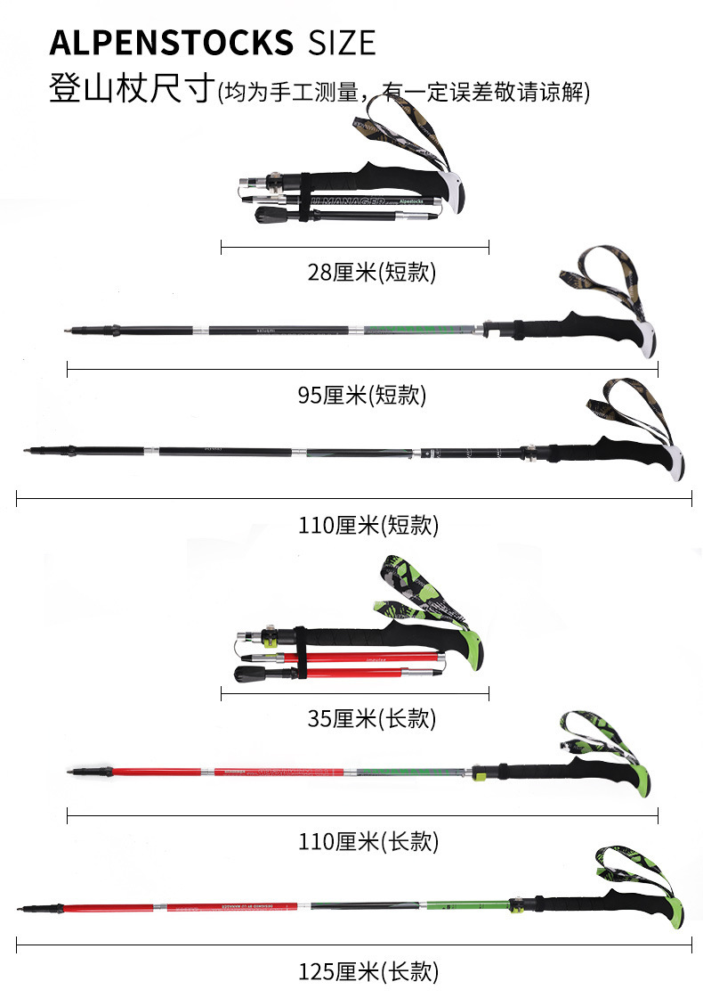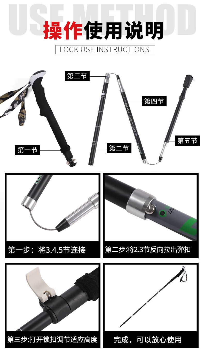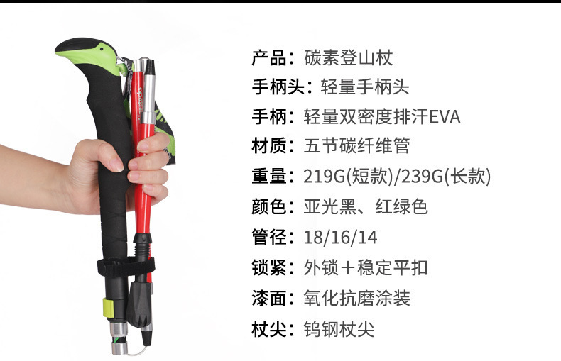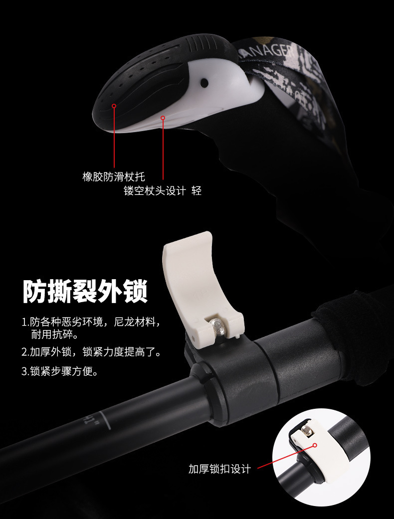 [공장] 탄소 등반 스틱 접히는 미끄럼 방지 목발 전투 다기능 하이킹 도매