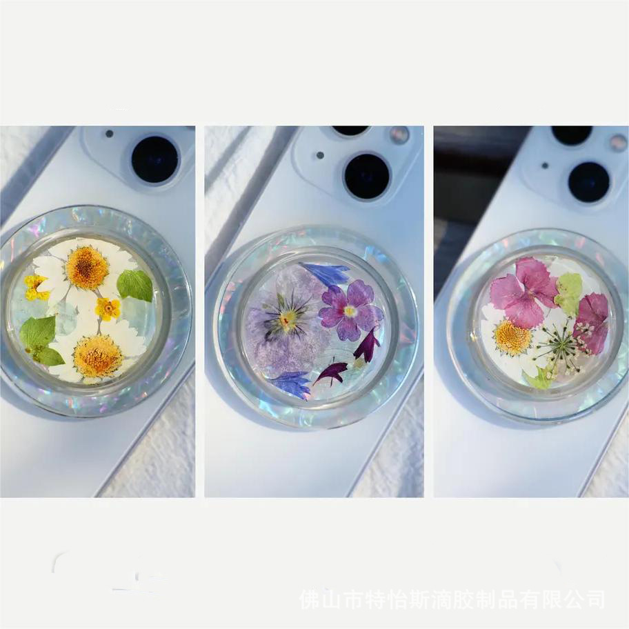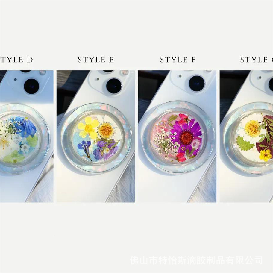 가을 새로운 폭발 진짜 꽃 말린 꽃 방울 접착제 쉘 종이 라운드 자석 대형 홀더 게으른 휴대 전화 홀더스토어 가기