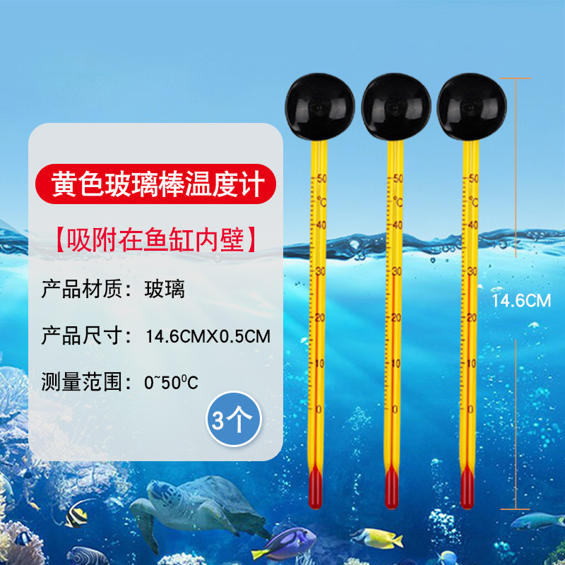 • 흡입 컵이 있는 노란색 유리 막대 온도계 3개
