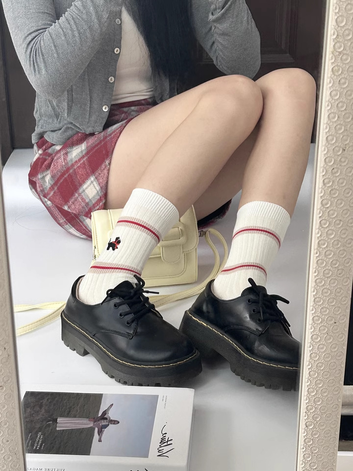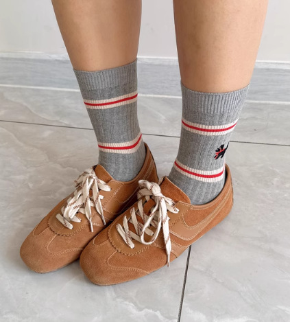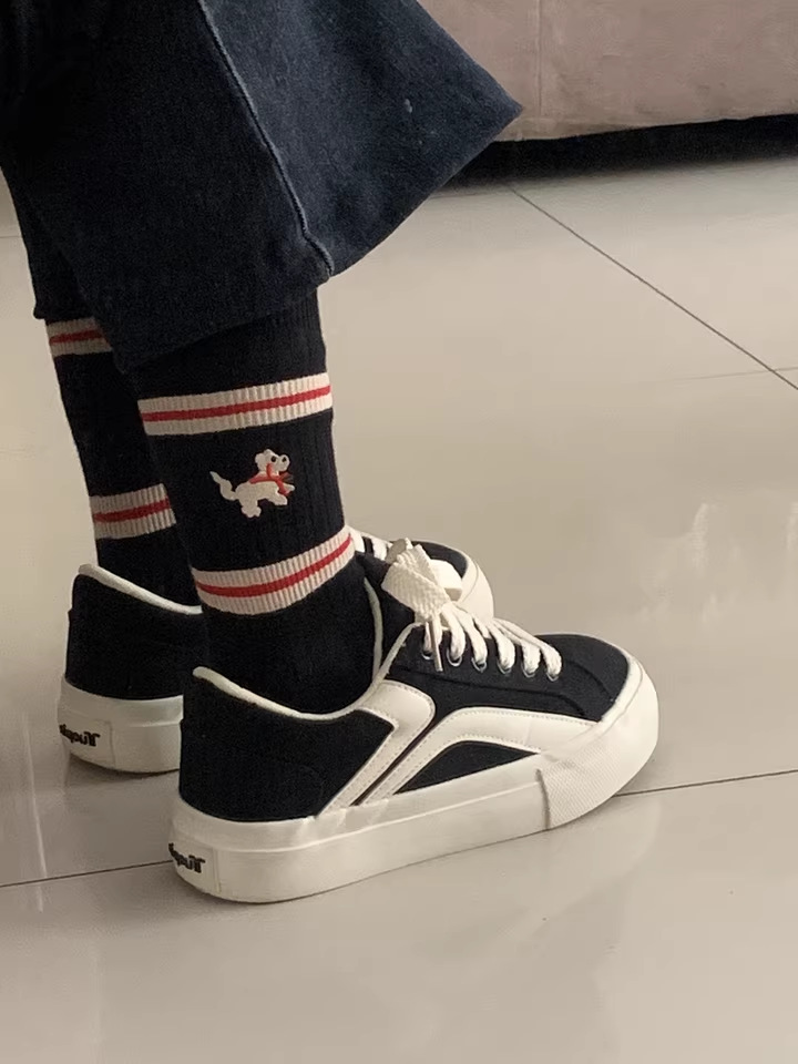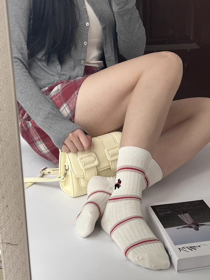 AB 빨간 개 줄무늬 양말 어린이 양말 가을과 겨울 새로운 한국어 면화 더미 양말 만화 Zhuji 도매스토어 가기