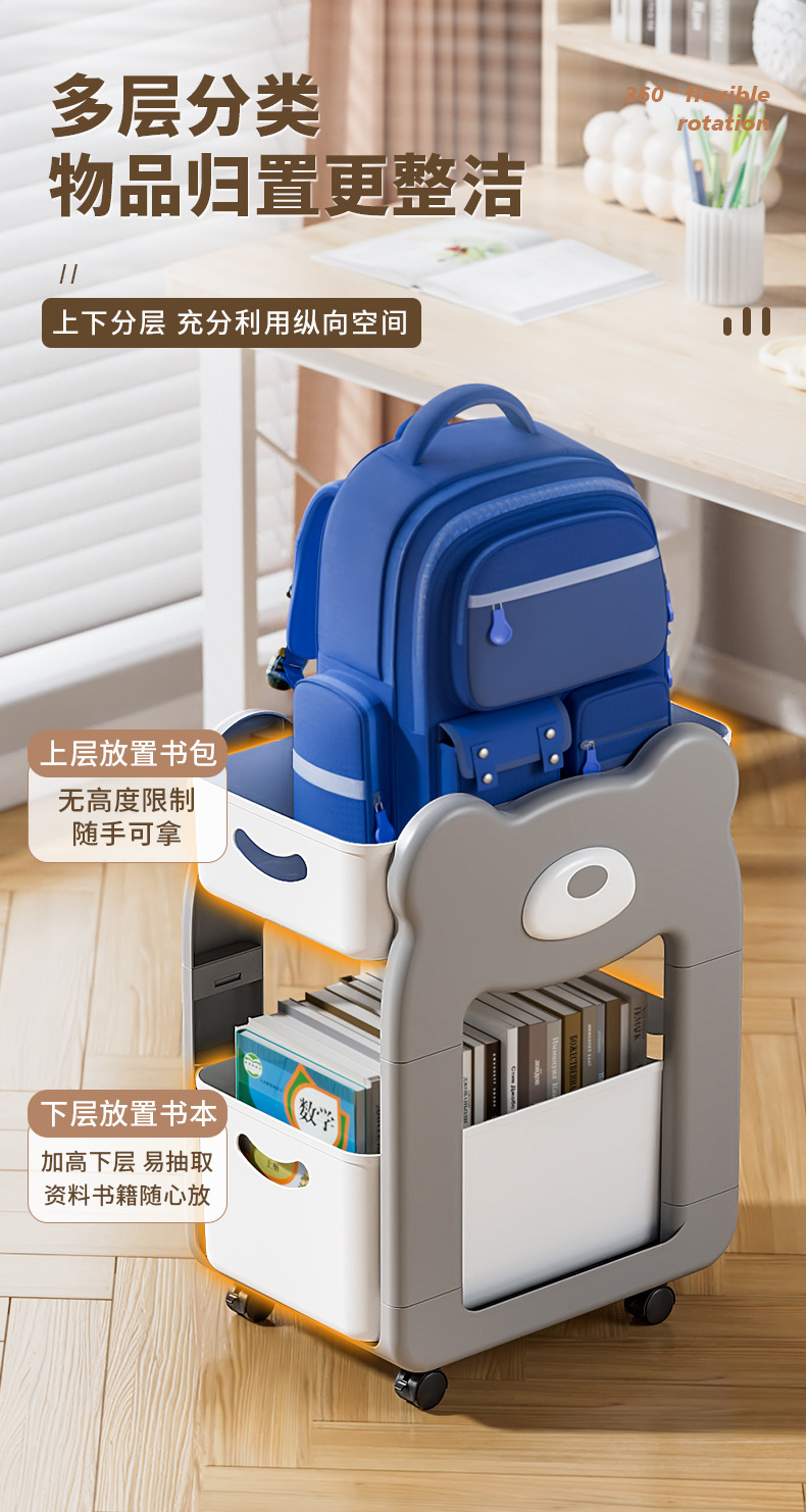 학교 가방 스낵 스토리지 랙 테이블 북 스토리지 랙 학생 홈 기숙사 데스크탑 책장 아래 움직일 수있는 카트