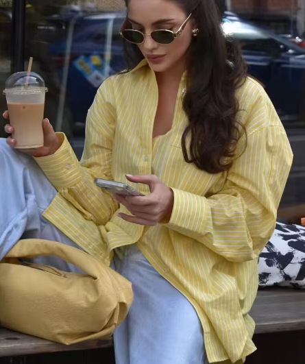 국경을 넘는 긴팔 여름 자외선 차단 신상 여성복 프랑스 디자인 감각의 라펠 유럽풍 루즈핏 캐주얼 셔츠스토어 가기