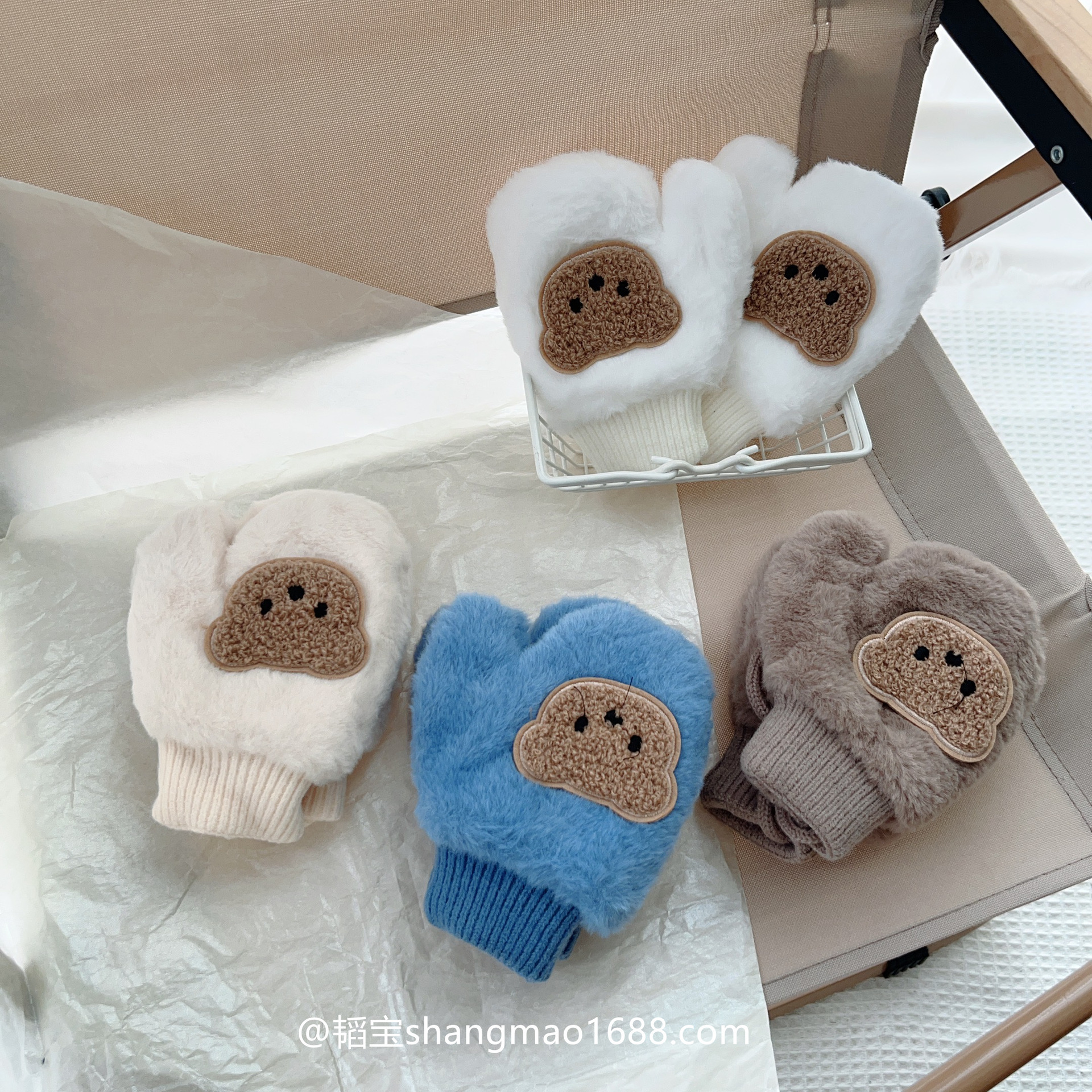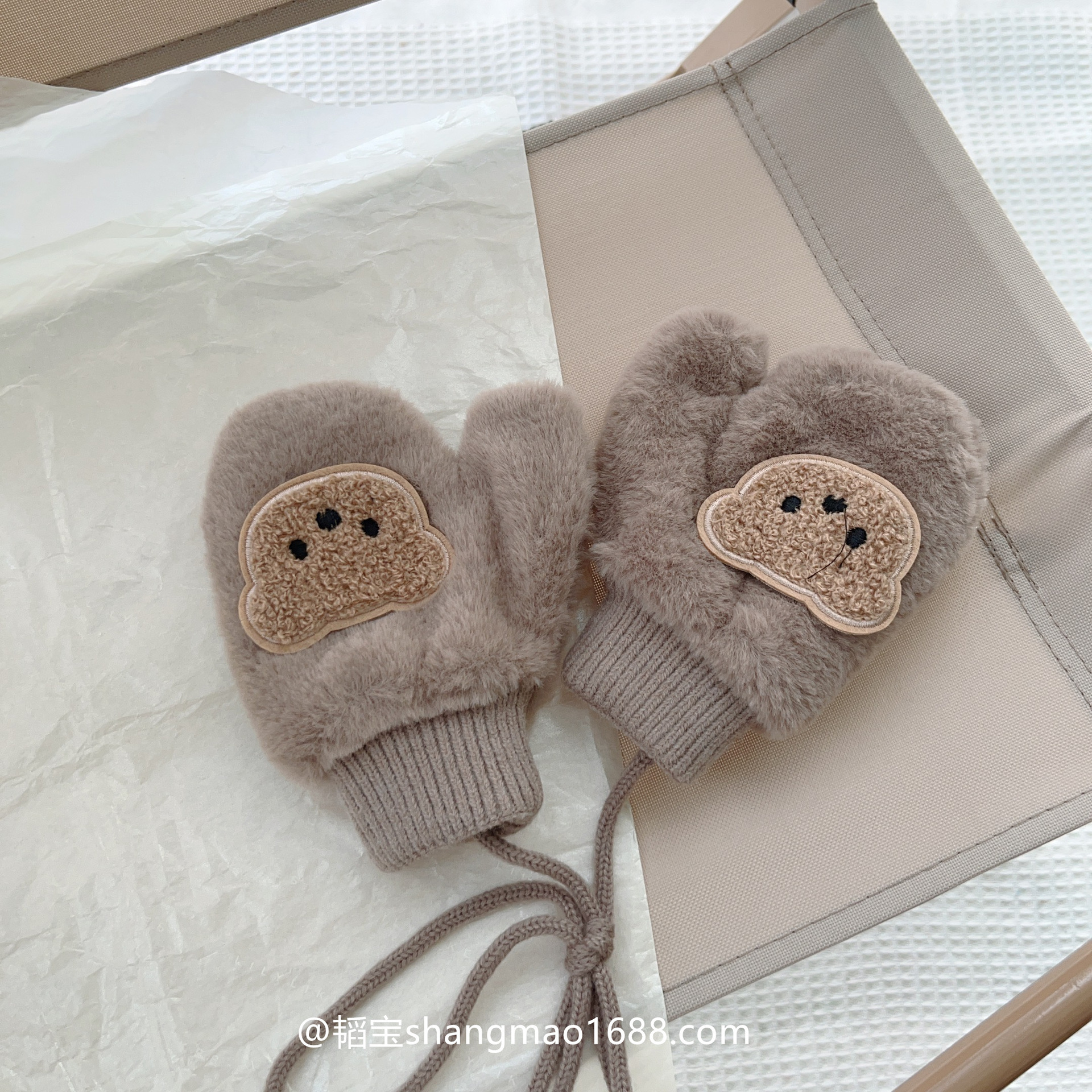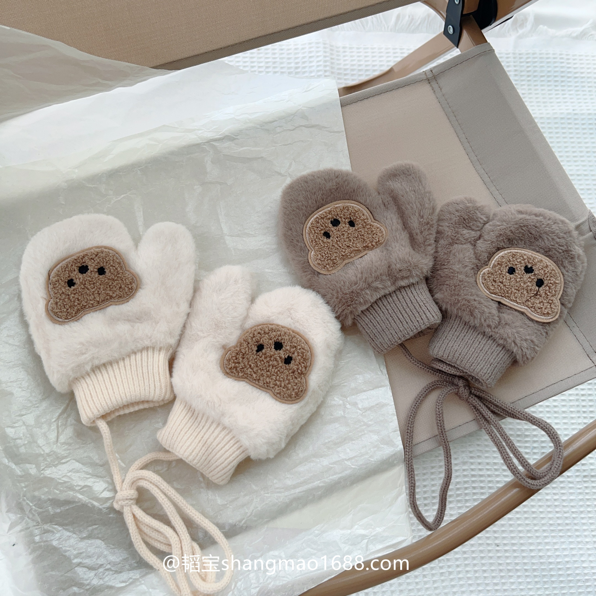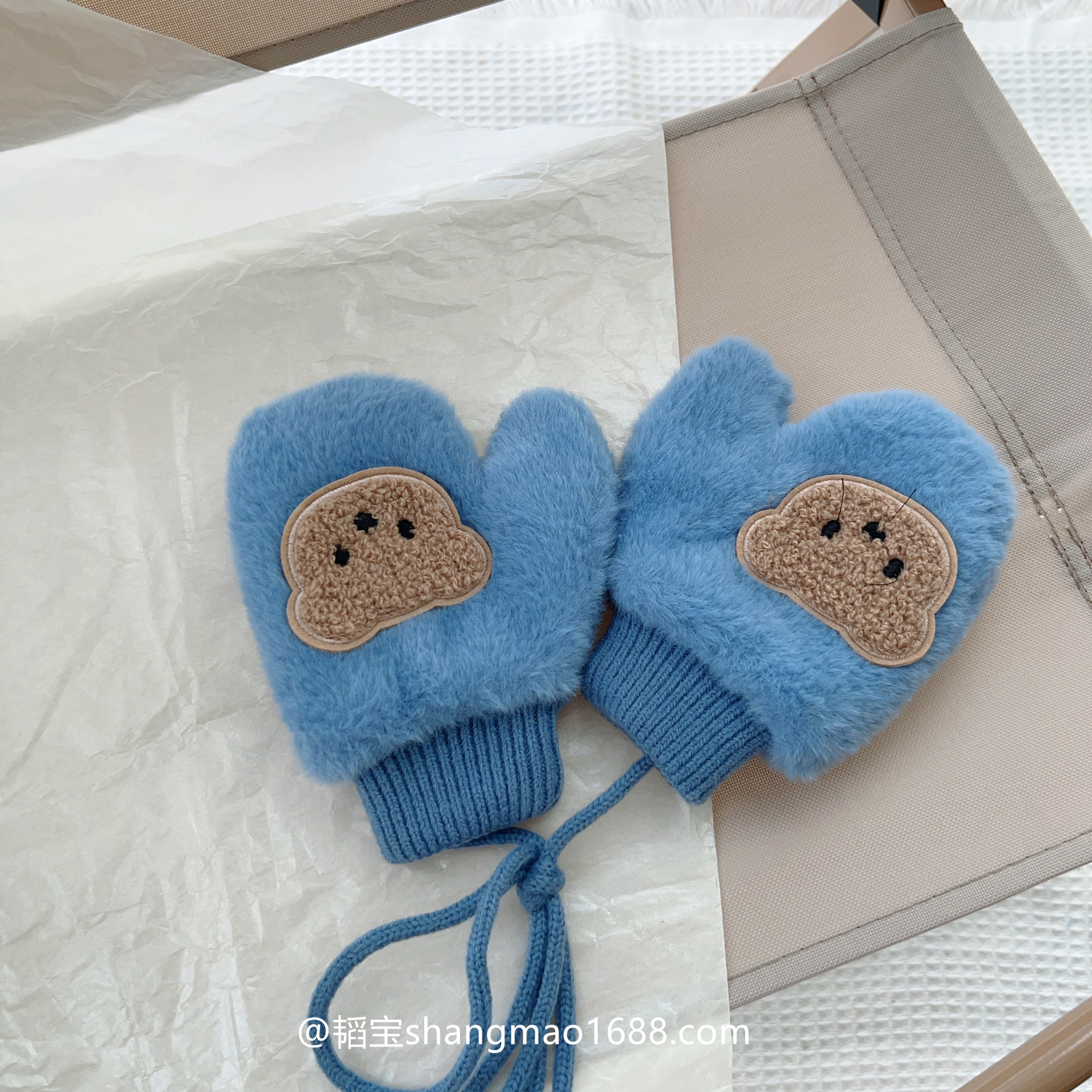 한국 만화 아기 가방 매달려 목 장갑 가을과 겨울 어린이 손가락 봉제 방풍 사이클링 야외 가을 따뜻한스토어 가기