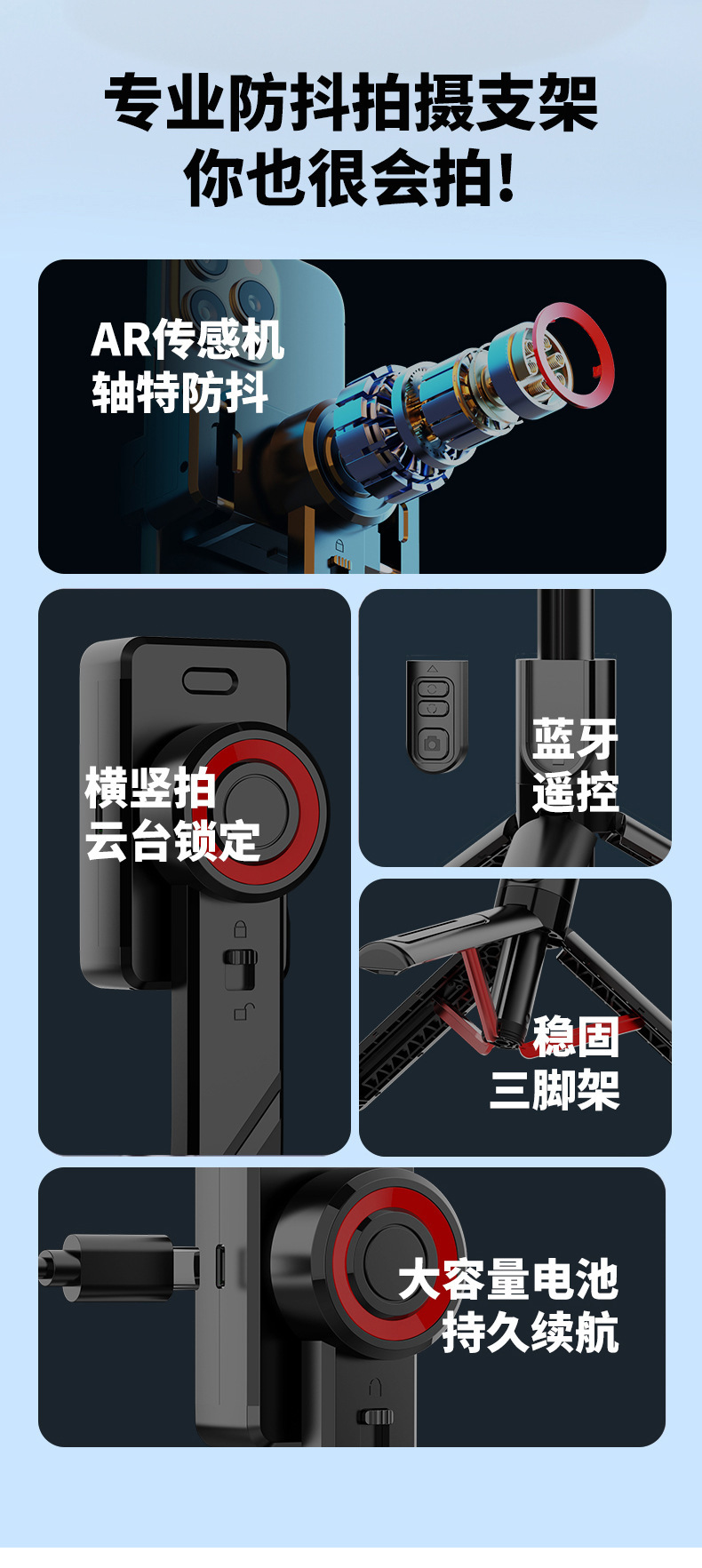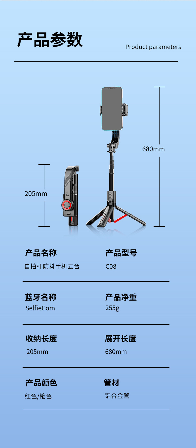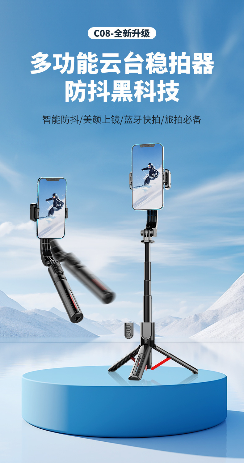 • C08 프리미엄 버전 (68cm + 흔들림 방지 및 안정화 + 리모콘 제어 회전 + 원클릭 가로 및 세로 촬영 + 도적 공간)