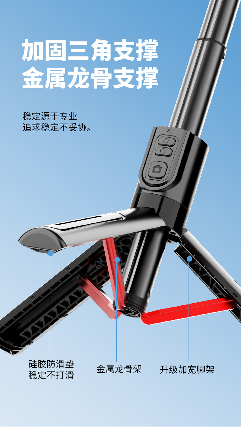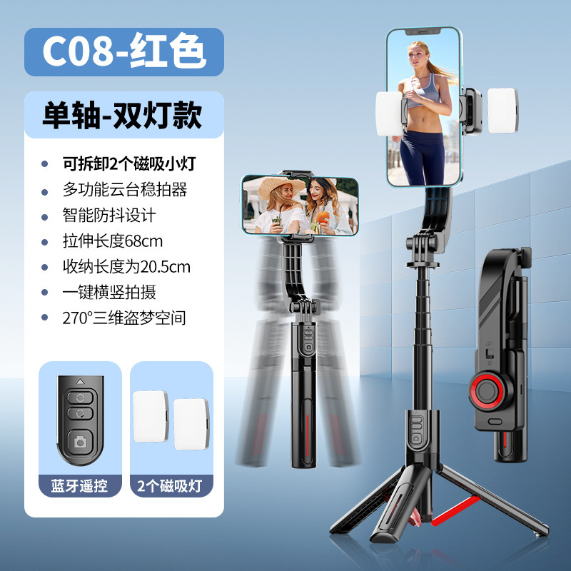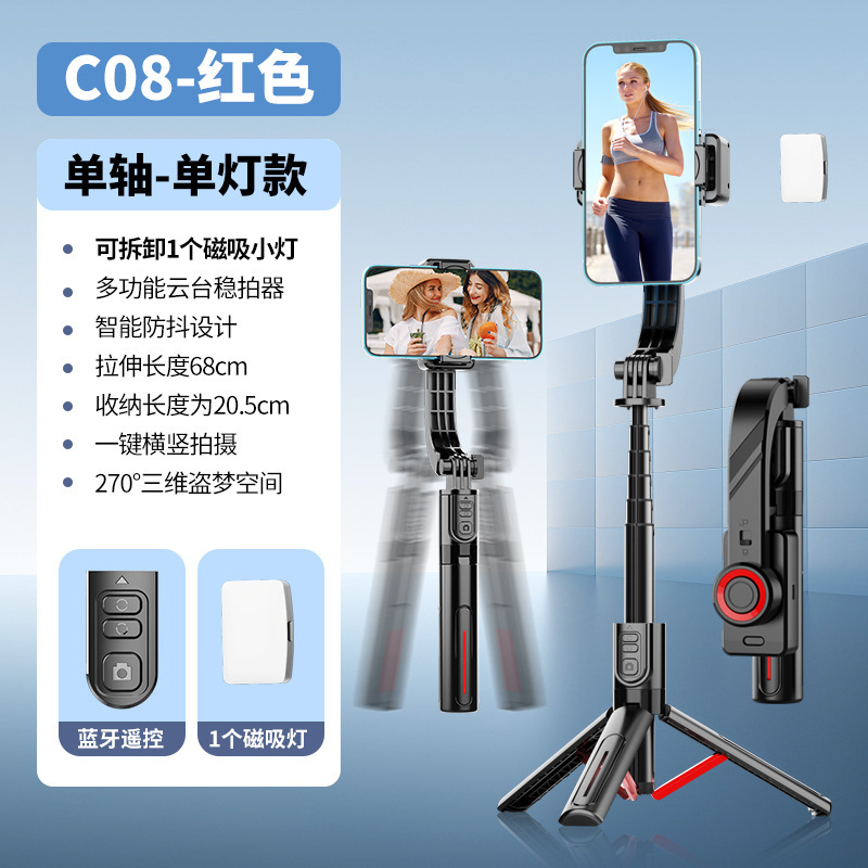 • C08 단일 필 라이트 버전(68cm + 단일 자기 필 라이트 손떨림 방지 및 안정화 + 리모콘 제어 회전 + 원클릭 수평 및 수직 촬영 + 도둑질 공간)