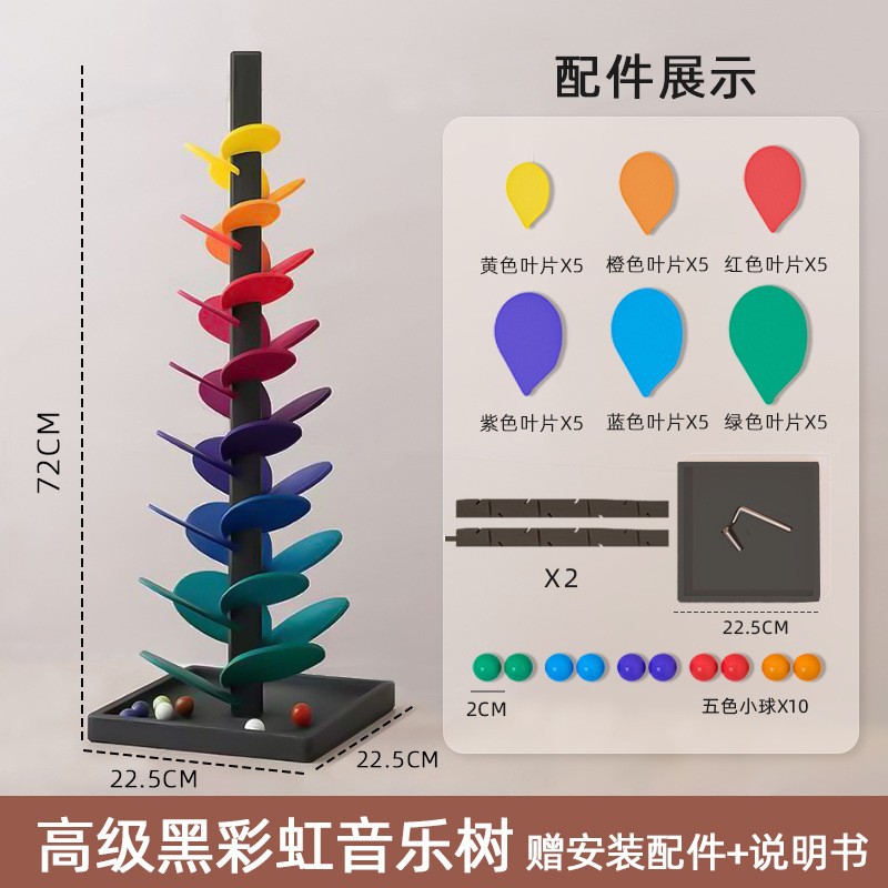 音乐树配件:30片叶子(6种颜色,每个颜色5片)➕10个小球➕一个收纳底座➕2根木棍➕1张点胶➕1张防滑贴➕1个迷你螺丝刀➕1颗螺丝钉
