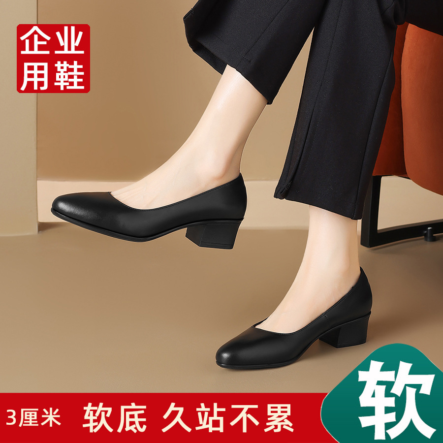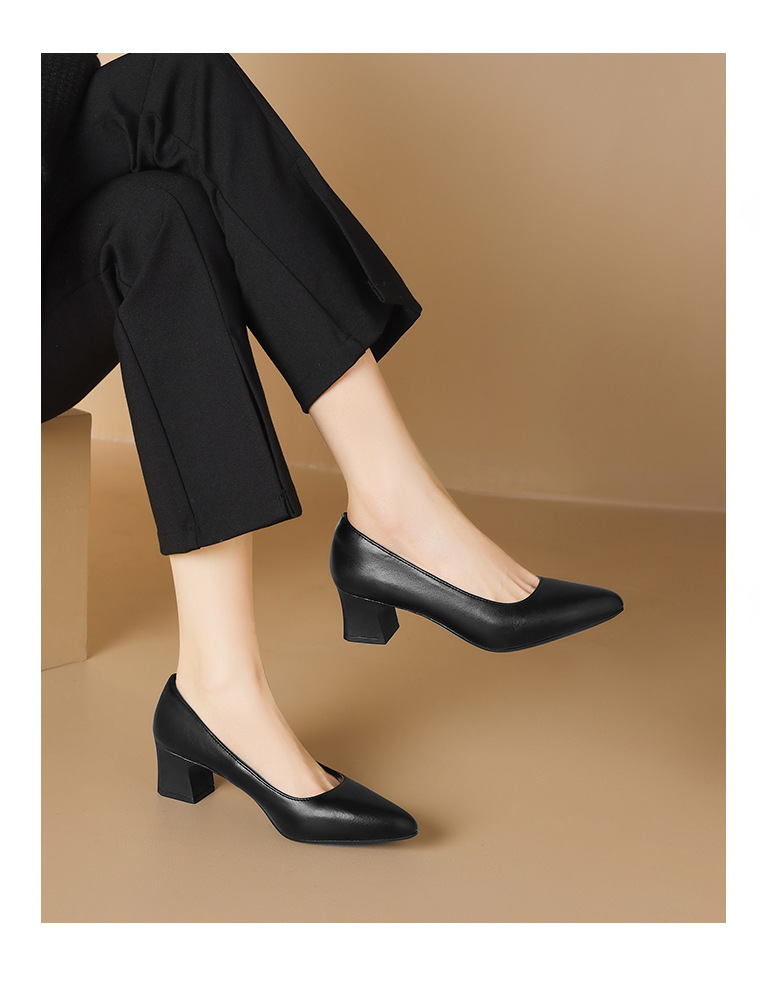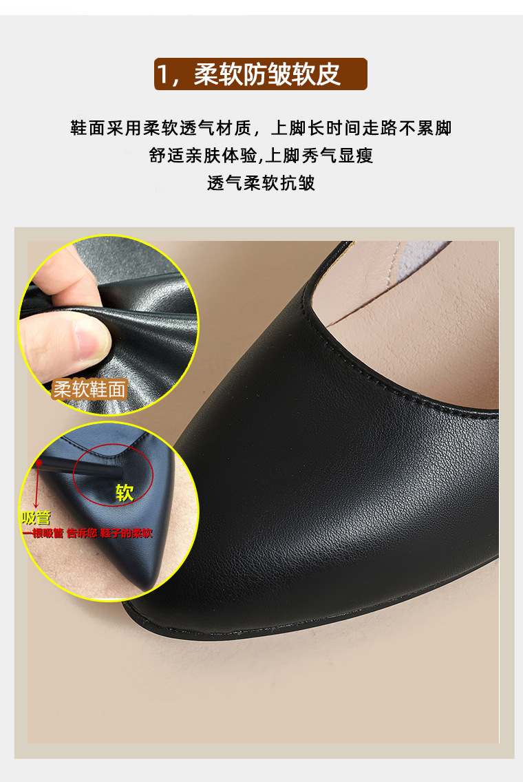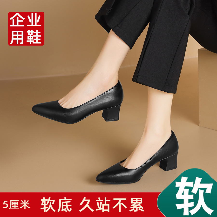 스튜어디스 작업 신발 블랙 여성의 가죽 신발 긴 긴 피곤하지 않은 발 부드러운 바닥 인터뷰 전문 뾰족한 하이힐 싱글 신발스토어 가기