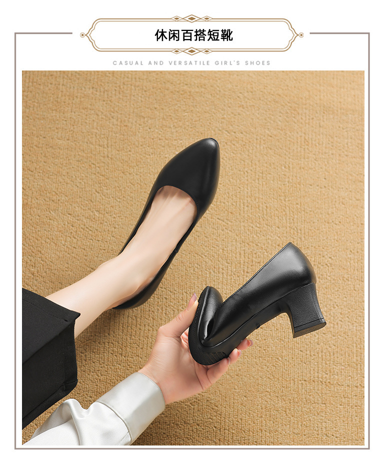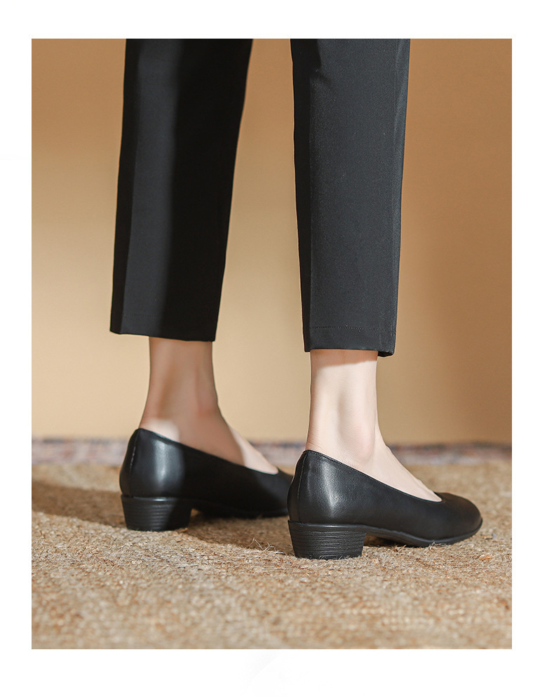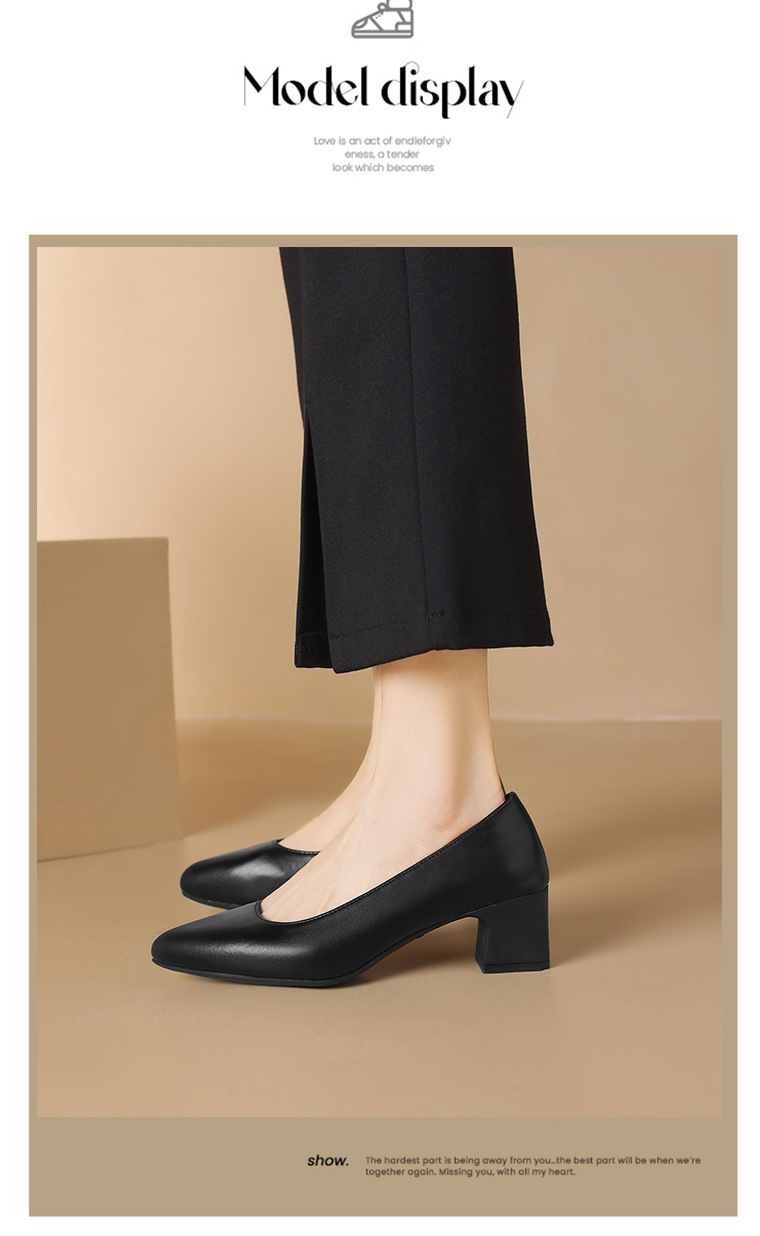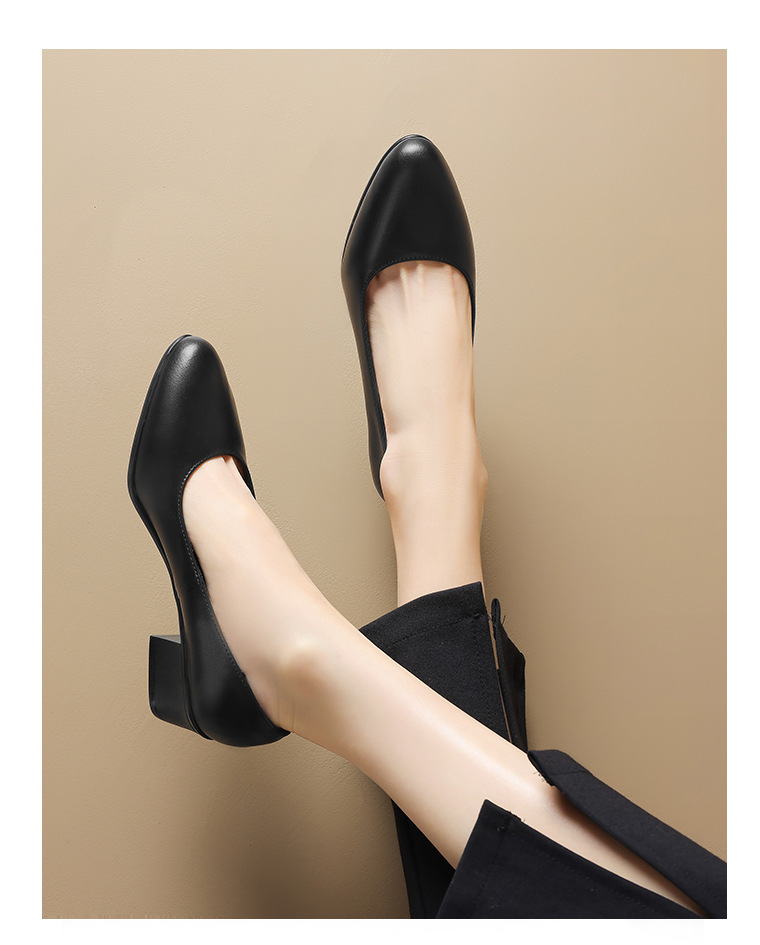 스튜어디스 작업 신발 블랙 여성의 가죽 신발 긴 긴 피곤하지 않은 발 부드러운 바닥 인터뷰 전문 뾰족한 하이힐 싱글 신발스토어 가기