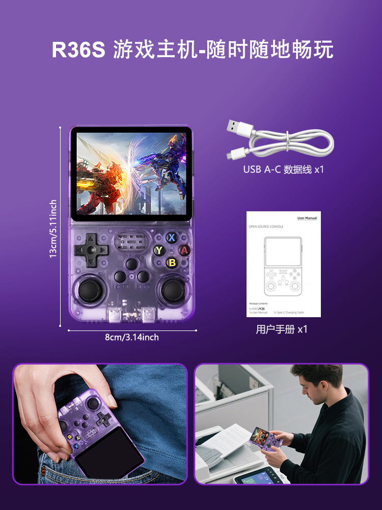 신형 r36s 오픈 소스 휴대용 게임기 휴대용 레트로 아케이드 게임 향수 3D 듀얼 시스템 휴대용 게임기 해외 판매스토어 가기