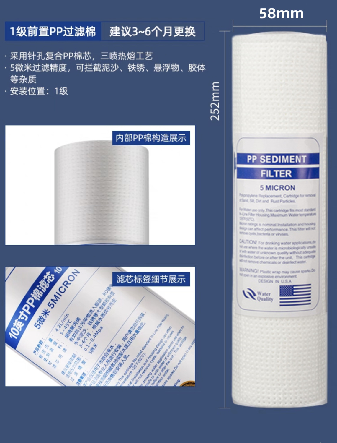 정수기 필터 요소 10 인치 pp 면 전면 활성탄 가정용 5 단계 세트 역 삼투 범용 필터 요소의 다른 전체 세트